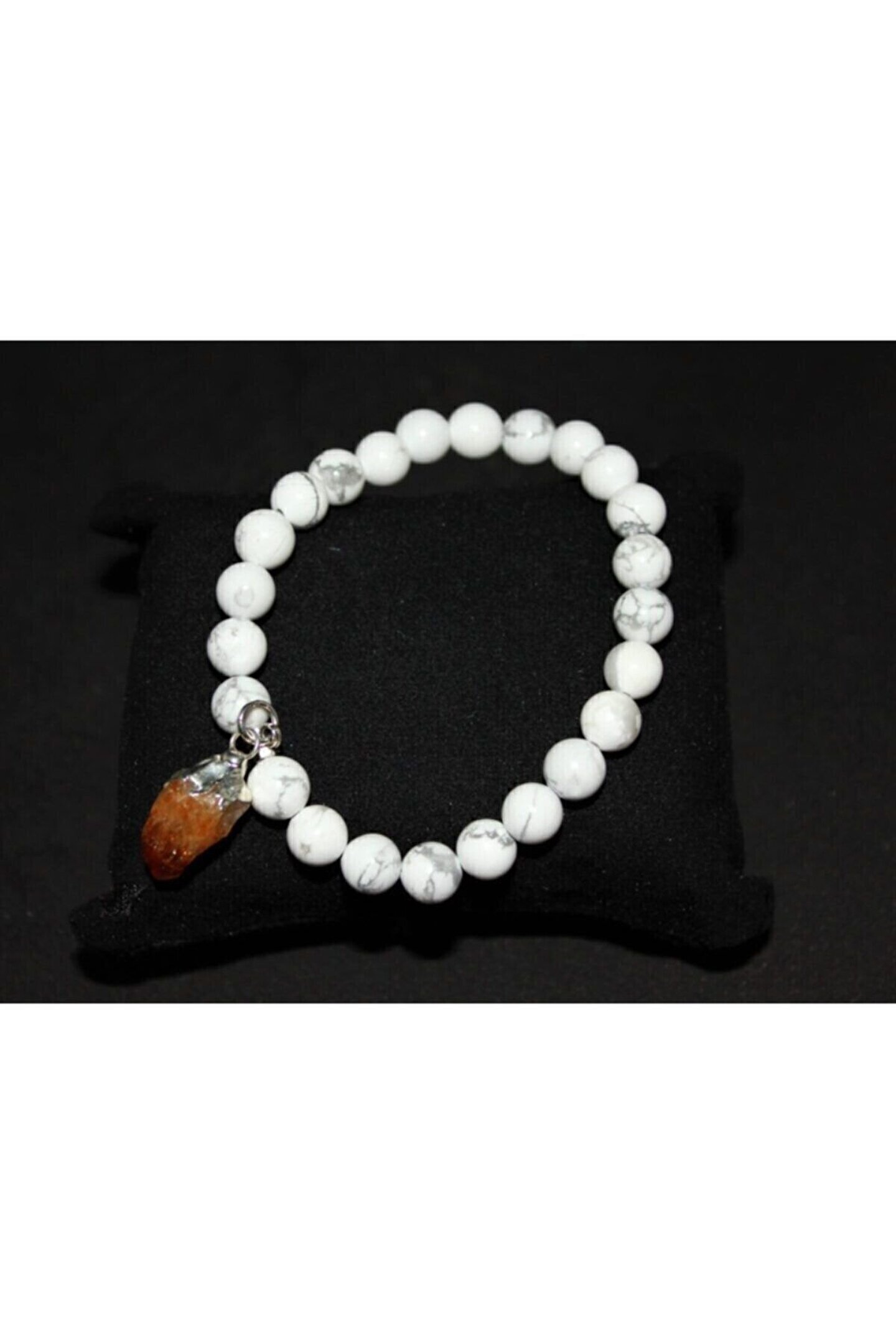 Bu Üründe Kullanılan Doğal Taş: Havlit Taşı Bu Üründe Kullanılan Doğal Taş Boyutu: 8 mm Elastik yapıda olduğu için yetişkin kadın ve erkekler için uygundur. ; Not: Ürünler doğal taş olduğu için renk tonları küçük farklılıklar gösterebilir. ; Ürünlerde kullanılan düğüm gizleyici stok durumuna göre farklılık gösterebilir. ; Üründe sallantı taşı Sitrindir. ; Sitrin başarı ve para taşıdır. ; Havlit sinir, stres, öfke kontrolünde yardımcı bir taştır.;