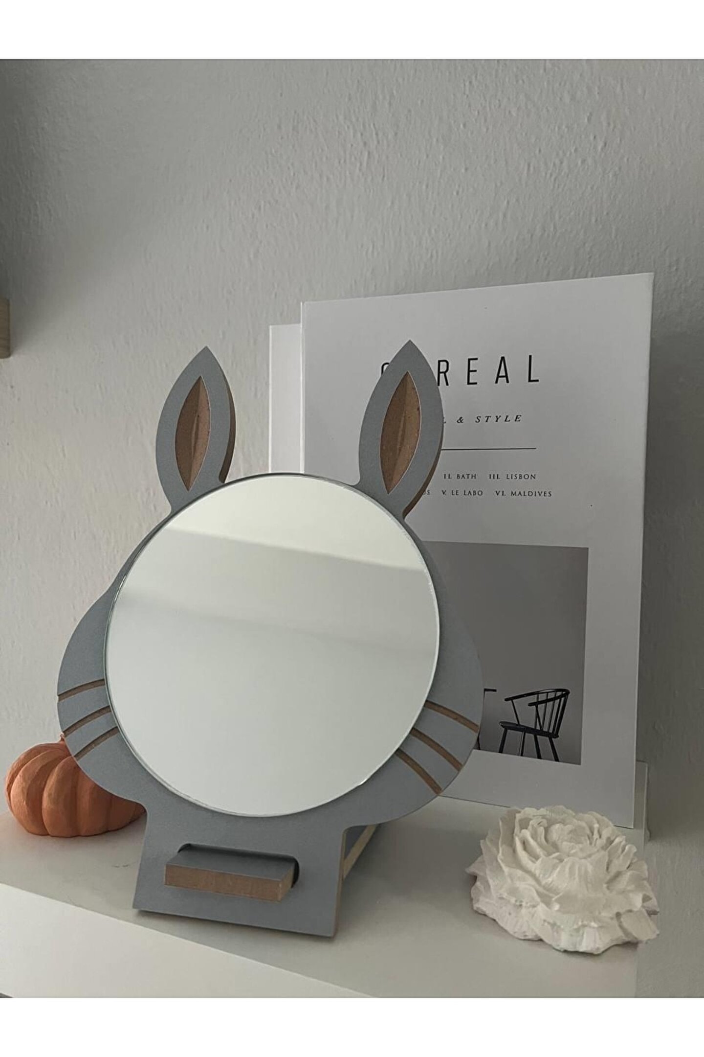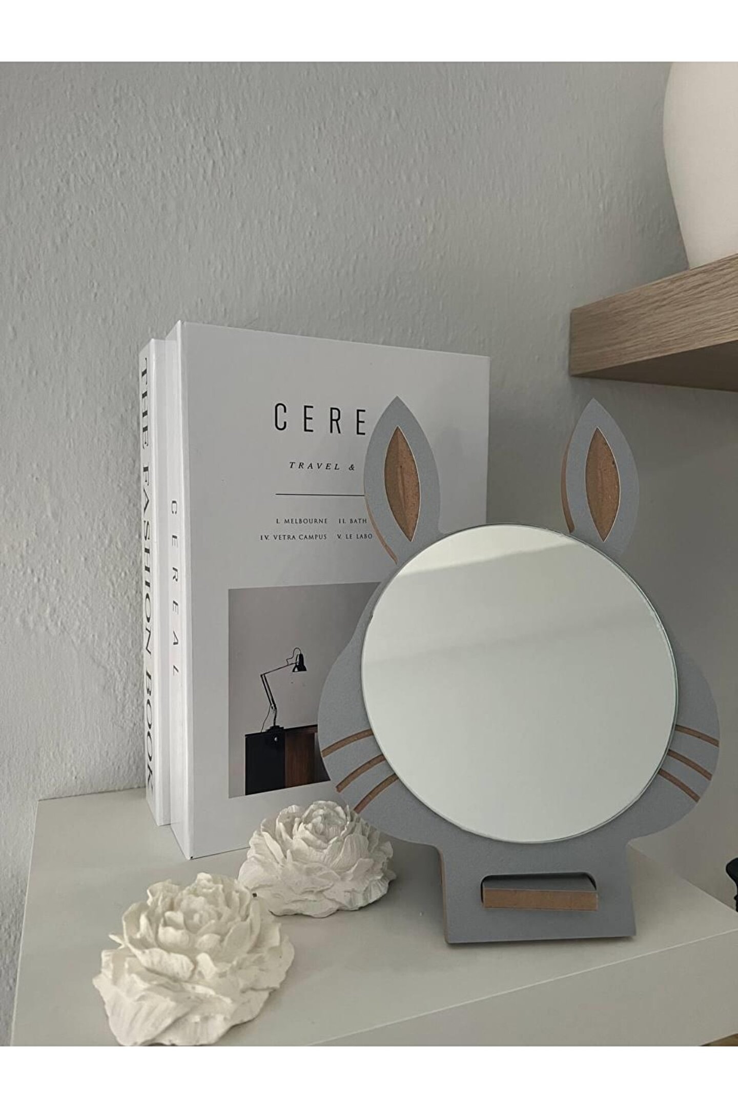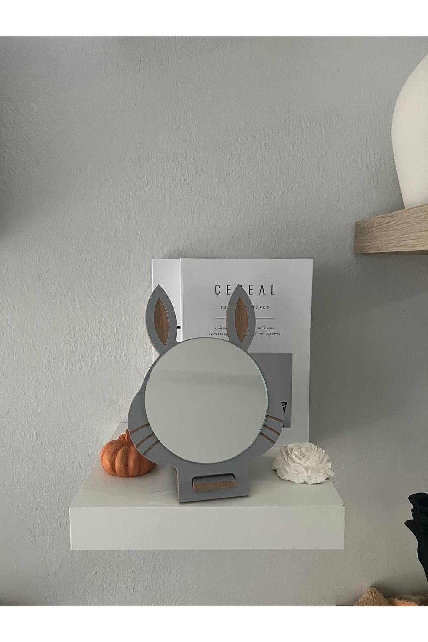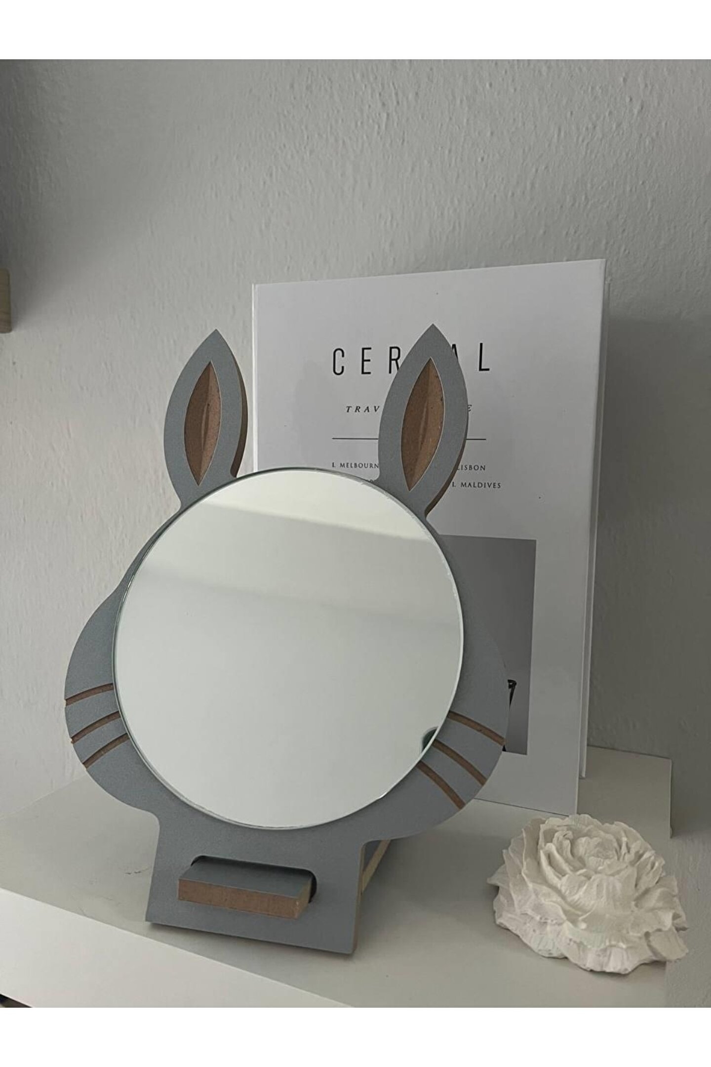 ARCHER Masaüstü Gri Renk Hediyelik Dekoratif Makyaj Aynasi,tavşan Kulaklı,sevimli Ayna, Çocuk Ve Genç Ayna,