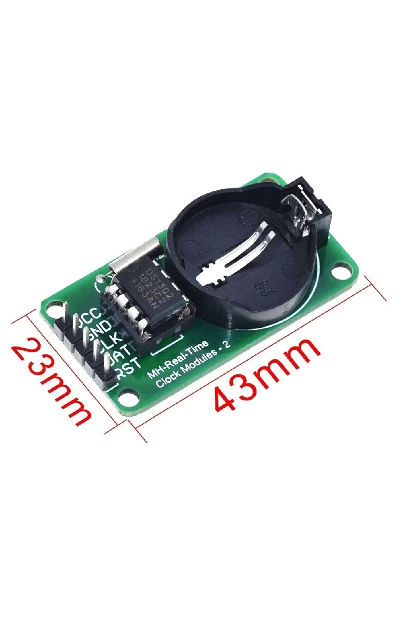DS1302 Entegresine sahip, gerçek zamanlı ve saati sıfırlamaması için pil yuvasına sahip olan bu saat modülü saati her zaman doğru verebilmektedir. Arduino ile uyumludur. DS1302 MH Gerçek Zamanlı Saat Modülü Özellikleri: Boyutlar: 43mm X 23mm Çalışma Voltajı: 2V - 3,3V - 5,5V Aktif çalışma Akımı (5V): 1,28mA Saat tutma Akımı (5V): 1uA Haberleşme protokolü: 3 pin seri