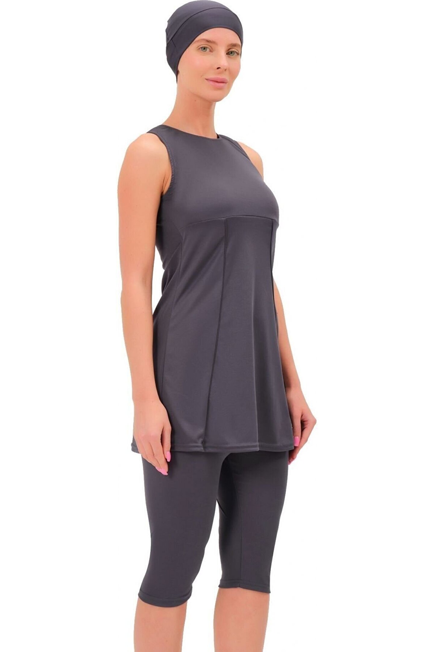Askılı Kolsuz Düz Sade Yarı Tesettür Mayo 7812 Füme Büyük Beden