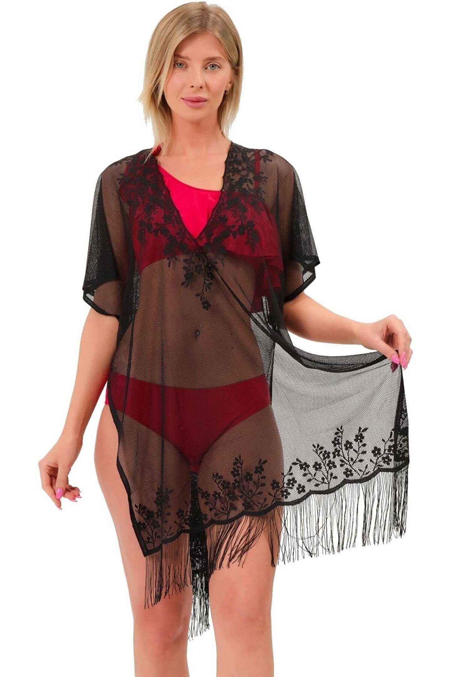 Çiçek Desenli Plaj Elbisesi Pareo 9016 Siyah
