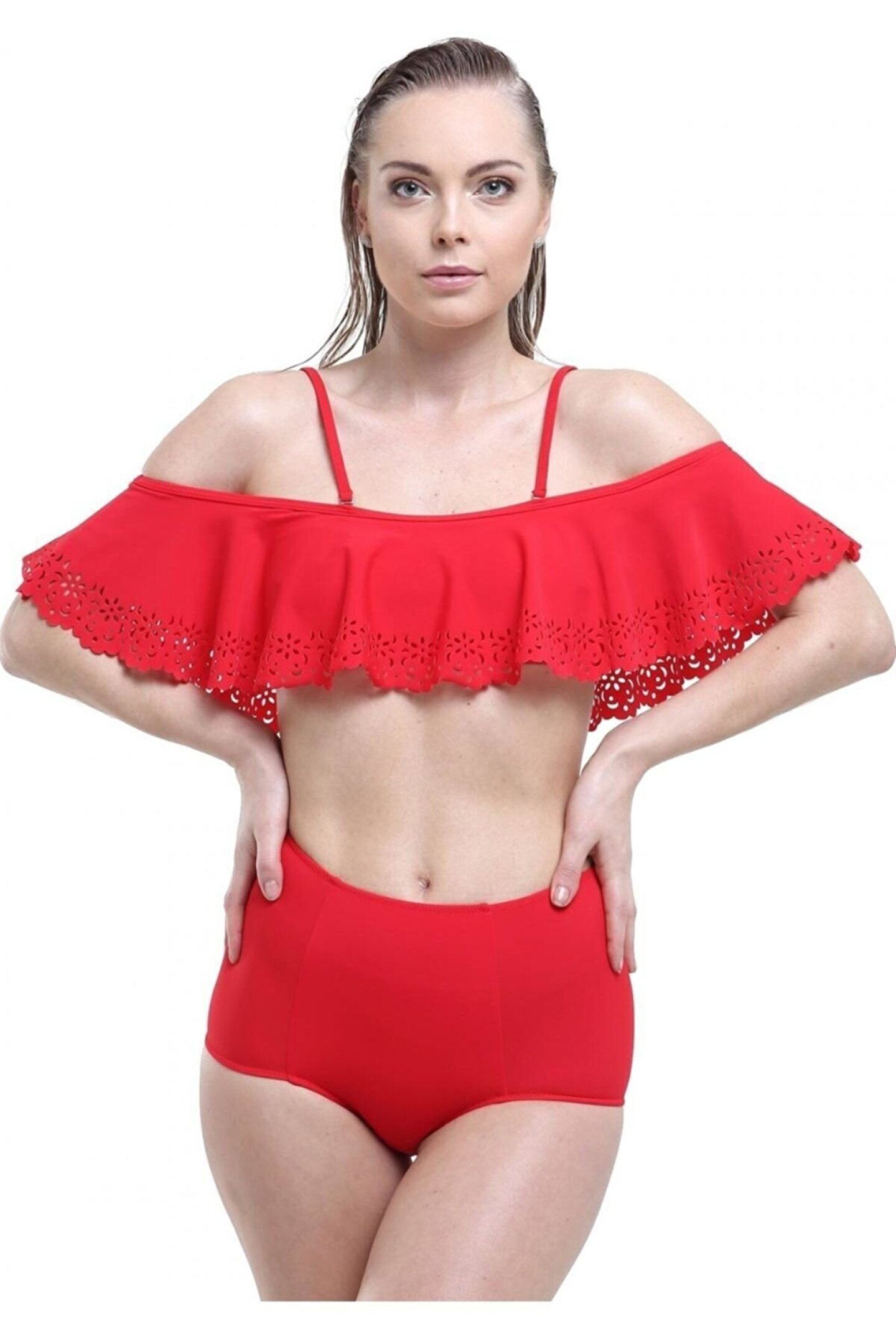 Lazerli Volanlı Bikini - Argisa 5022 - Kırmızı