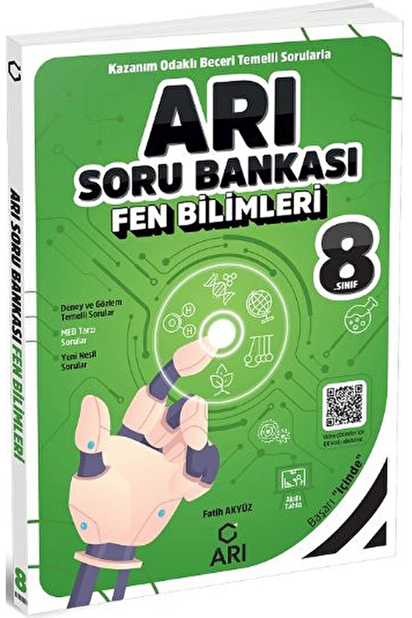 Arı Yayınları 8; Sınıf Fen Bilimleri Soru Bankası, öğrencilerin 8; sınıf müfredatına uygun olarak hazırlanmış kapsamlı bir kaynak kitaptır; Türkçe basımı sayesinde kolay anlaşılır ve akıcı bir dil ile yazılmıştır; Bu kitapta yer alan sorular, öğrencilere fizik, kimya ve biyoloji konularındaki bilgi ve anlayışlarını pekiştirmeleri için tasarlanmıştır; Setli veya tekil ürün seçenekleri arasında yer alan bu kitap, normal boyda olup rahat kullanım imkanı sunmaktadır; ;;