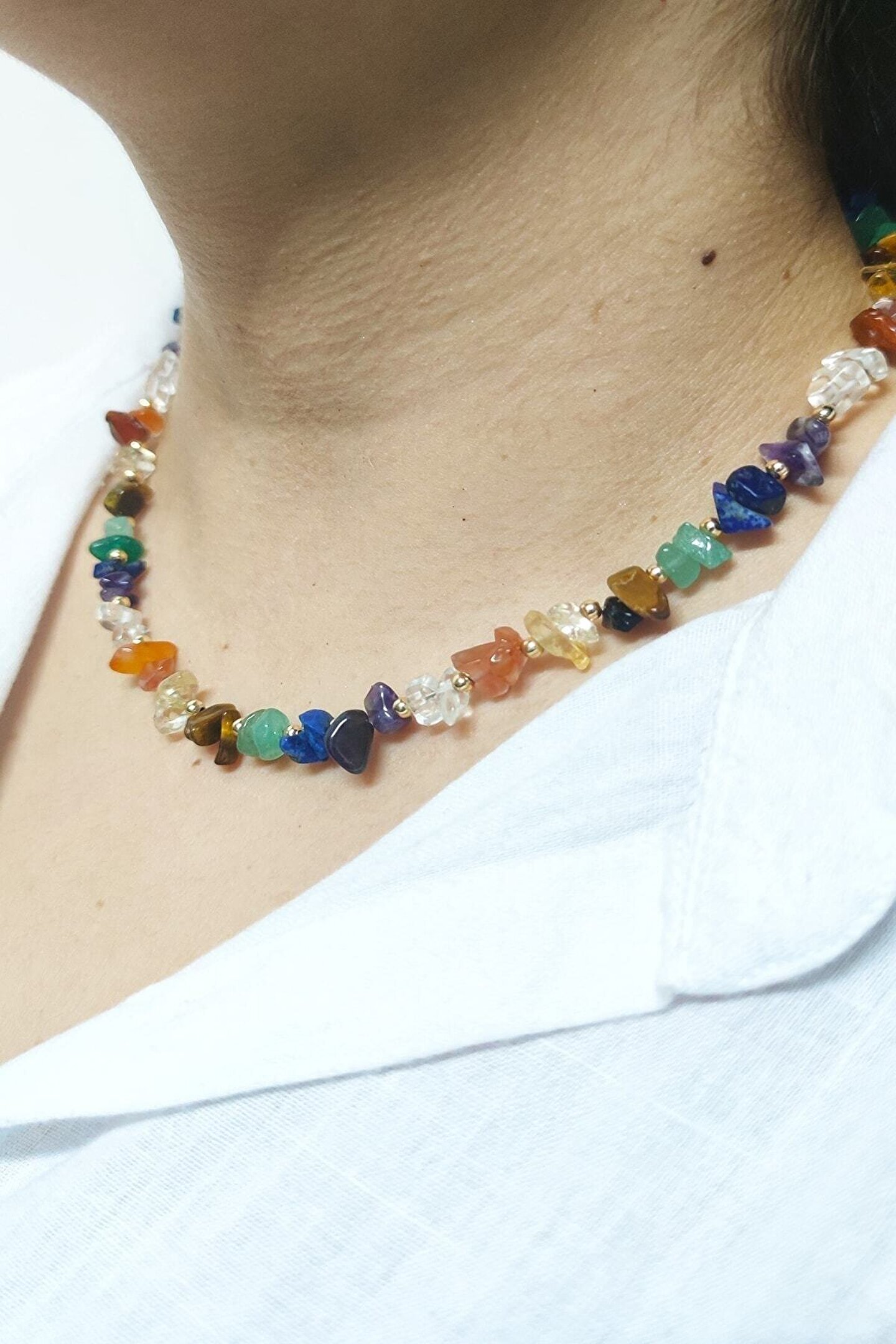 Armis çakra Kolye (kristal kuvars,ametist,lapis lazuli,aventurin,kaplan gözü,sitrin akik doğaltaş bileklik) ; Armis doğal 7 Çakra, enerji kolyesi akışına uygun şekilde bioenerji uzmanlarımız ; tarafından özel olarak özenle tasarlanmıştır. Kullanılan taşlar hitap ettiği çakralardaki tıkanıkların açılmasında etkili olduğu ulusal ve uluslararası literatürlerce ispatlanmıştır. ; Doğal taşların mistik enerjisiyle uyum ve ahenk içinde tasarlanmış olan kolyemiz 7 Çakra kullanılan taşlar ; kristal kuvars,ametist,lapis lazuli,aventurin,kaplan gözü,sitrin akik başlıca özellikleri ; Radyasyonu toplayarak vücuda yayılmasını engeller. ; Uyku Sorunu ; Cilt Hastalıkları ; Yaşama sevinci ; Psikolojik rahatsızlıklar ; Para, Kronik Yorgunluk ; Nazar (olumsuz enerji) ;