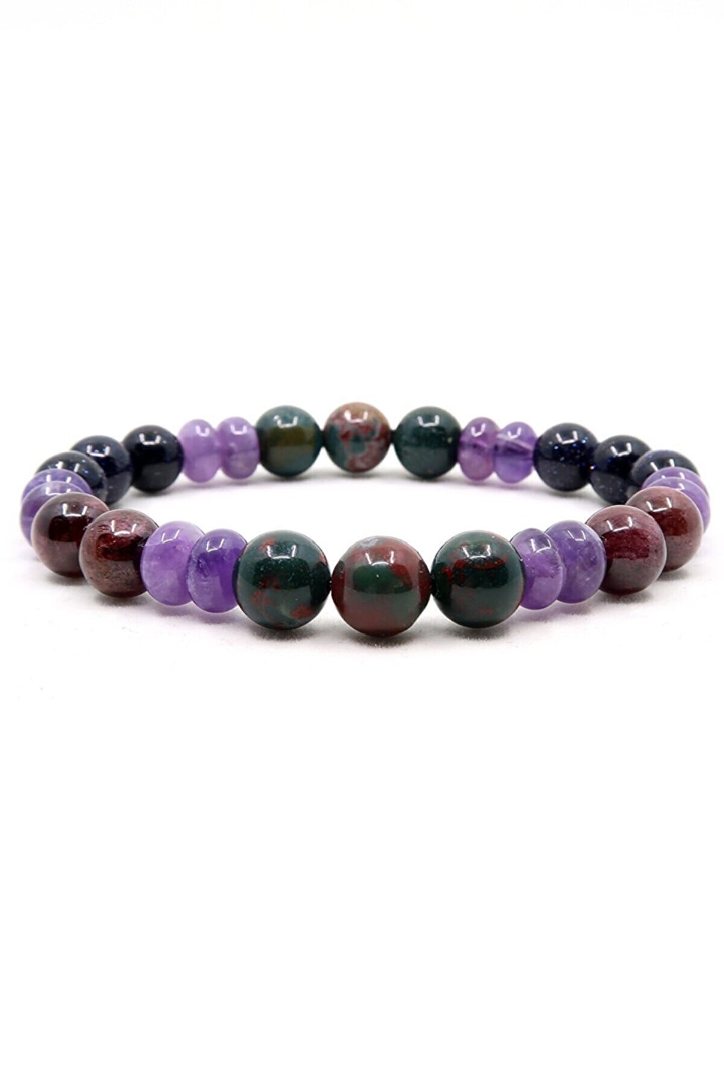Armis Doğal Taşlı Burç Bilekliği Koç Burcu (ametist Taşı-kan Taşı-garnet-yıldız Taşı)