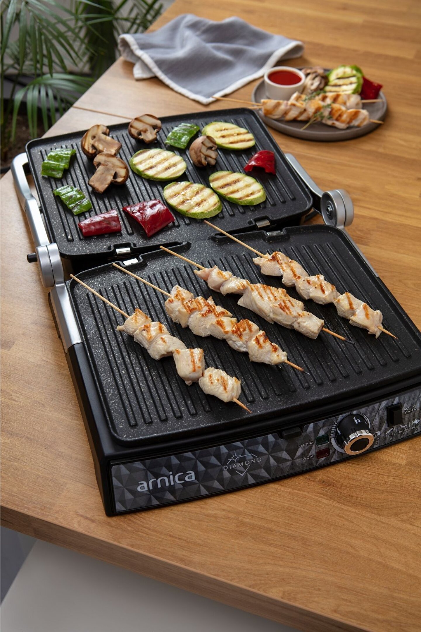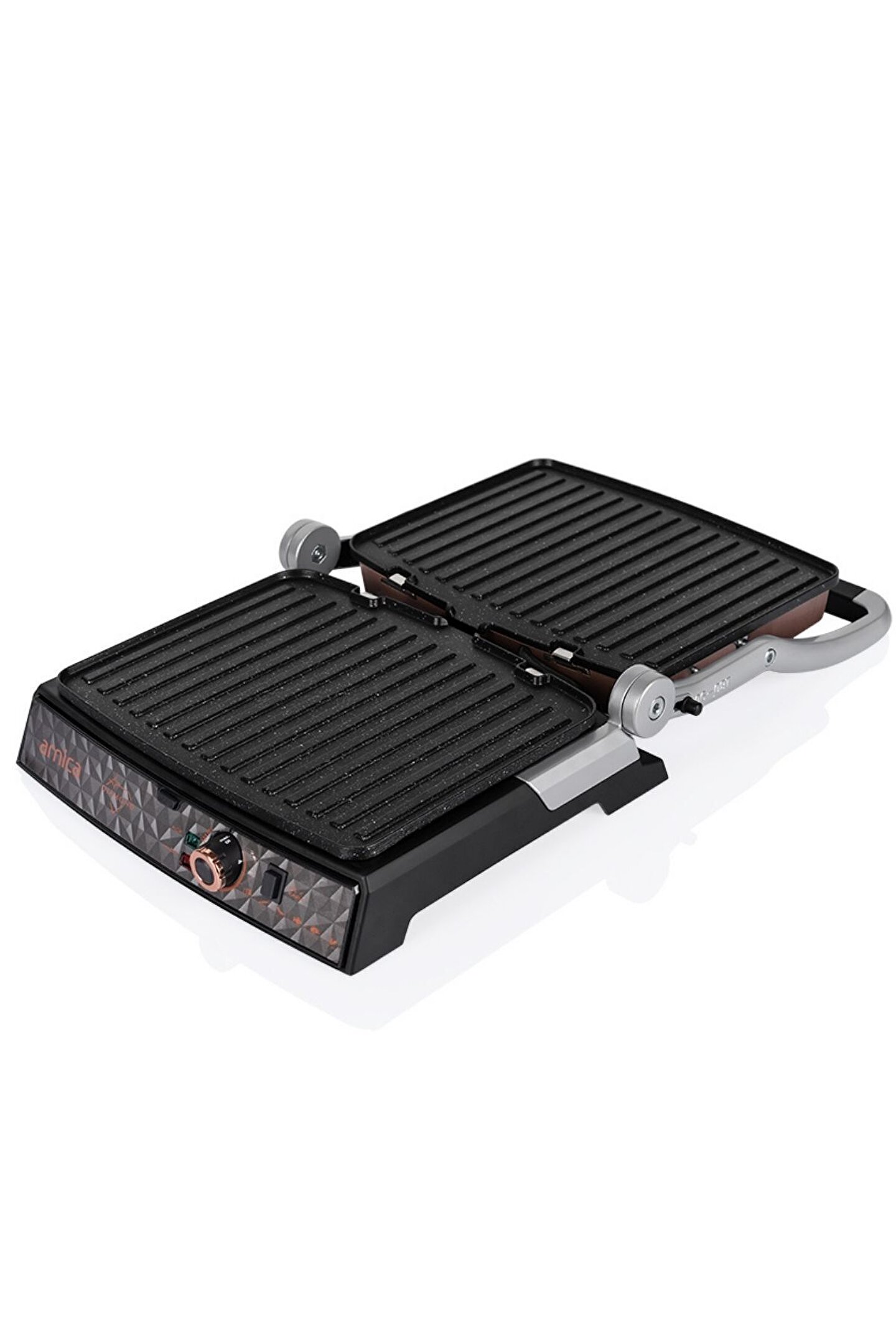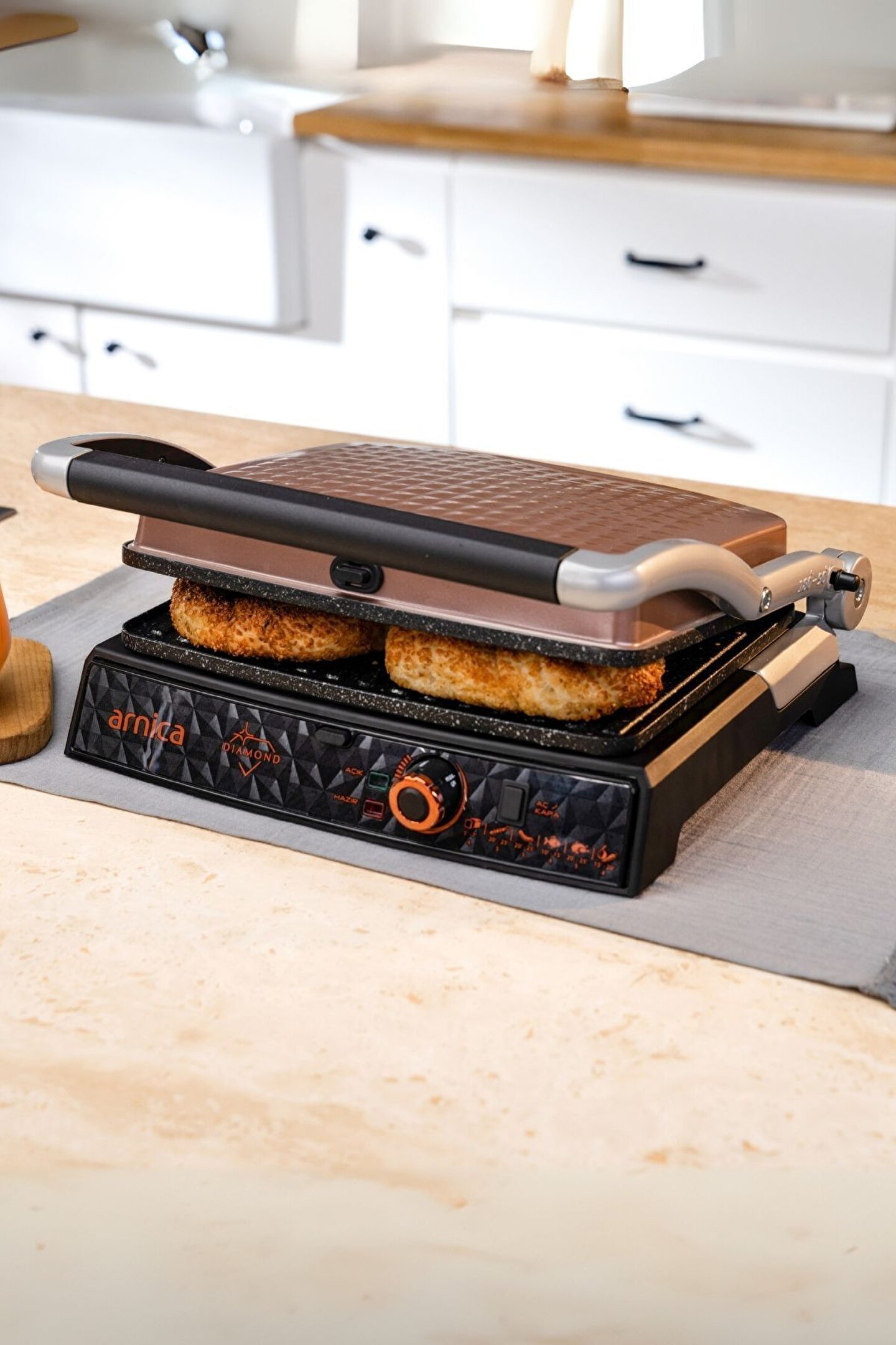 - Granit ızgara özelliği sayesinde, hem tostlarınızı hem de ızgara yapma imkanı sunar, böylece sabah kahvaltılarından akşam yemeklerine kadar her an yanınızda; - Çıkarılabilir plakalar sayesinde temizliği kolay ve pratiktir; plakaları çıkararak hızlıca temizleyebilir ve hijyenik bir kullanım sağlayabilirsiniz; - 1501 - 2000 watt arası güç kapasitesi ile hızlı ve etkili pişirme performansı sunar, zamandan tasarruf etmenizi sağlar; - Tek yönlü plaka kullanımı ile tostlarınızın her iki tarafının da eşit şekilde pişmesini sağlar, lezzetli sonuçlar elde etmenize yardımcı olur; - Granit materyali sayesinde uzun ömürlü kullanım ve kolay temizlik avantajları sunarken modern tasarımıyla mutfak dekorasyonunuza şık bir dokunuş katar; - 5 kademeli ısı ayarı ile farklı kalınlıkta ekmek ve malzemelere uygun sıcak;