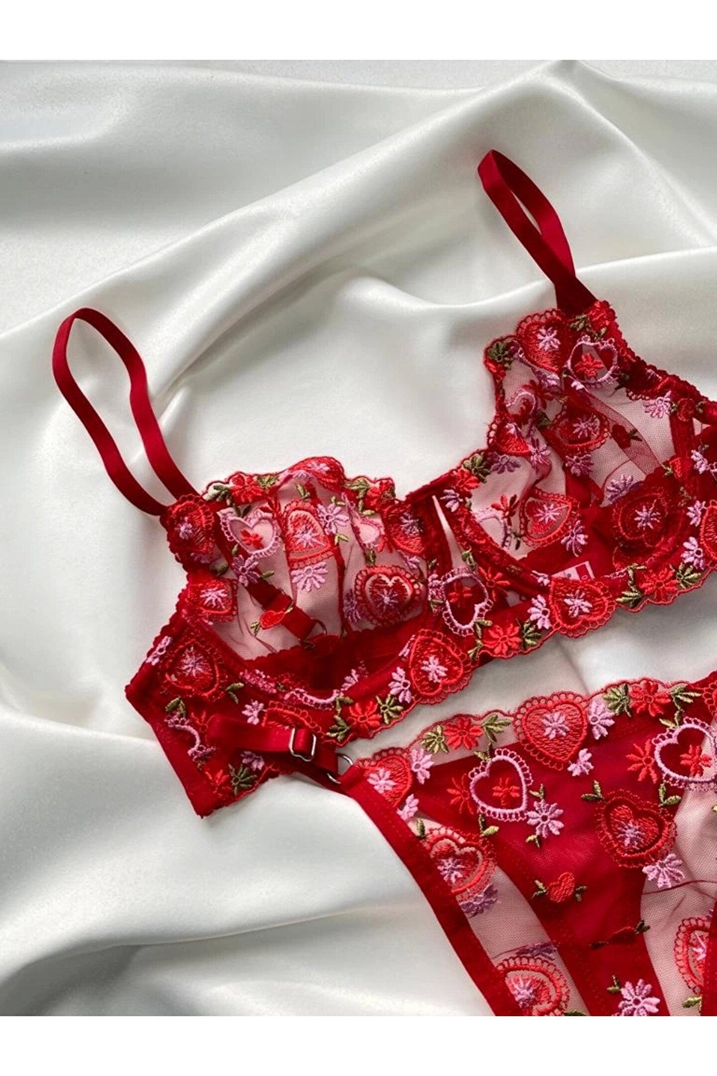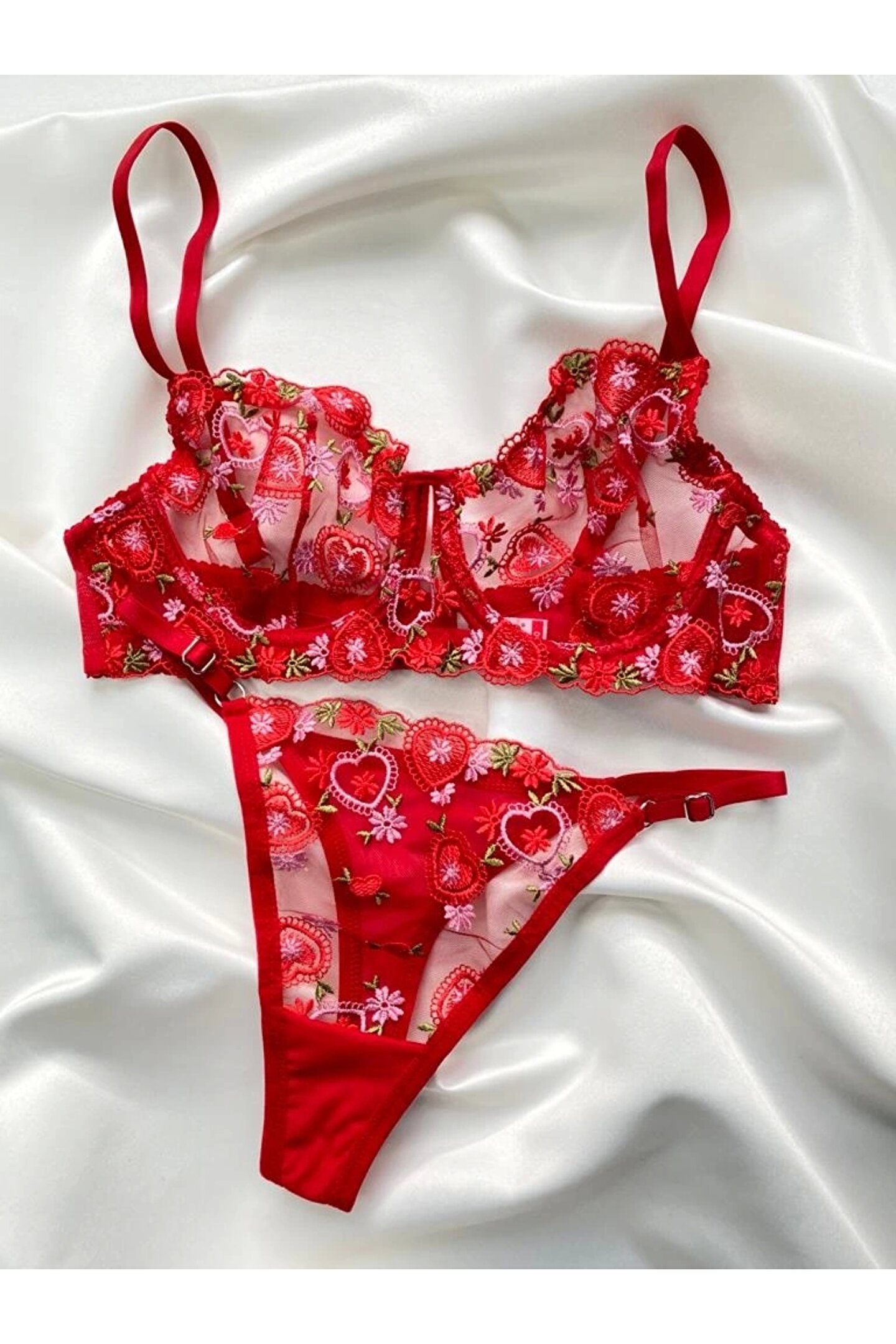 ARONA CHRİSTMAS LOVE KIRMIZI KALPLİ BRODE SÜTYEN TAKIM (YILBAŞI ÖZEL)