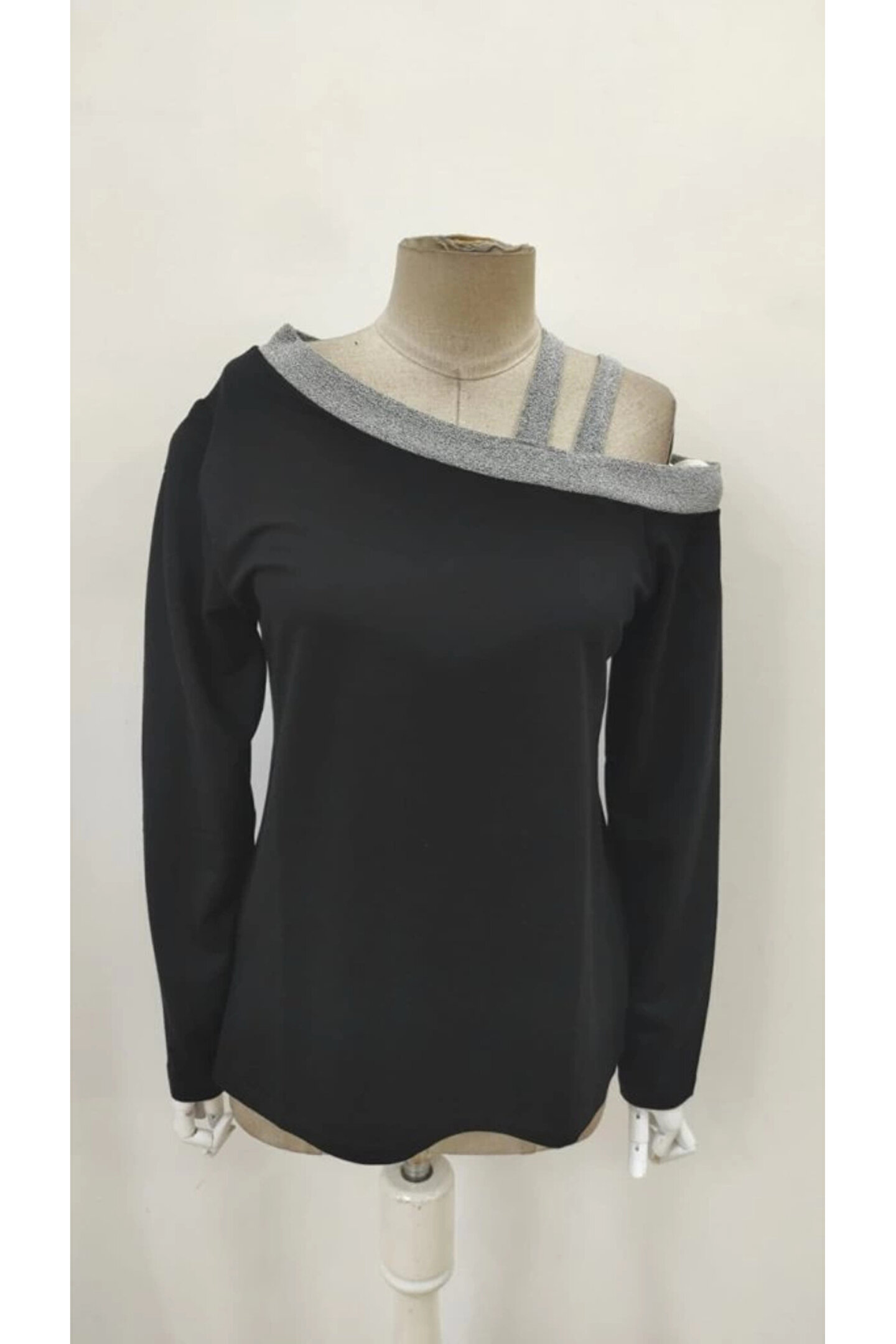 Kadın Uzun Kollu Omuzdan Askılı Sim Detaylı Viskon Iki Iplik Bluz