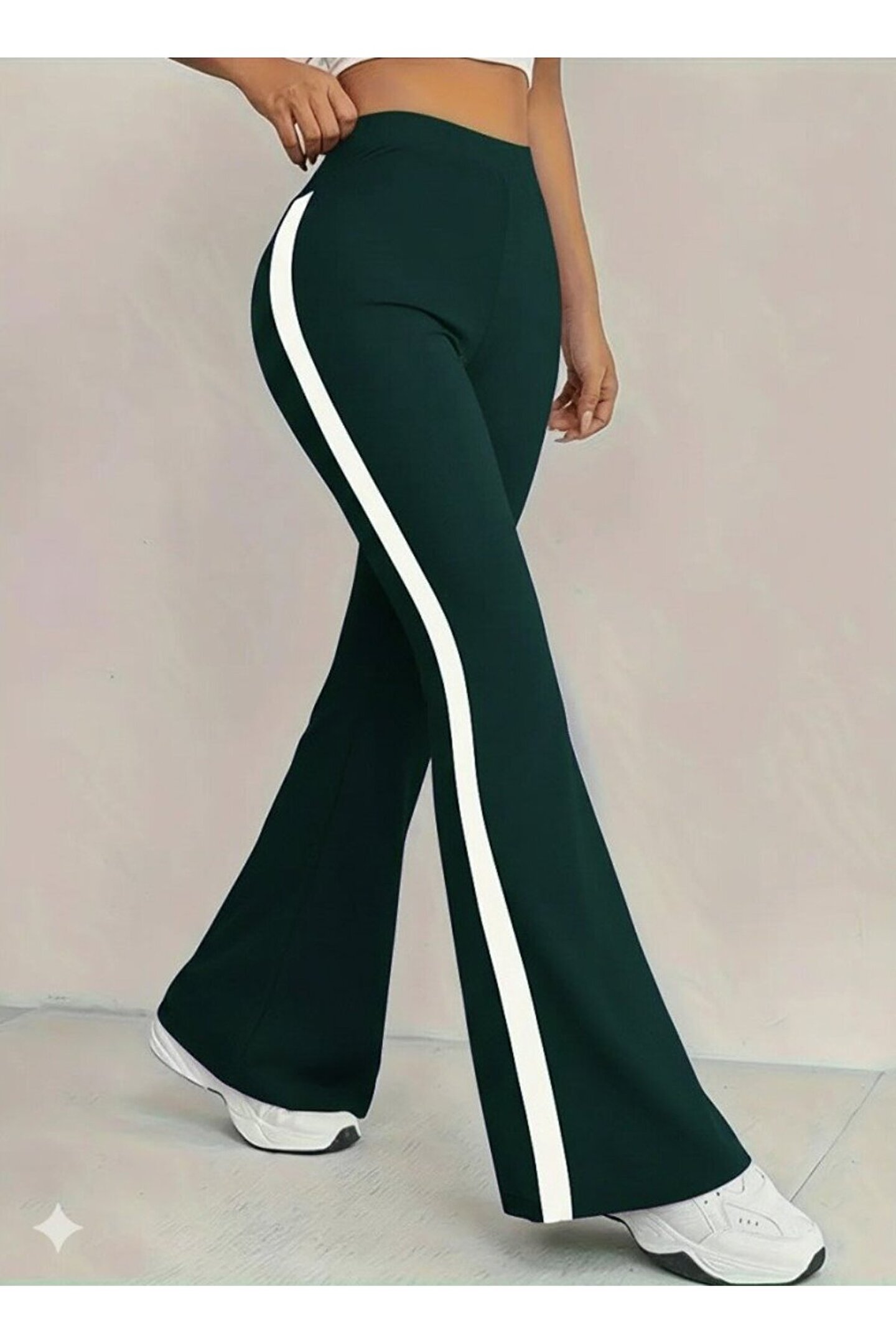 Kadın Yüksek Bel İspanyol Paçalı Yanlardan şerit Detaylı Dalgıç Tayt Pantolon