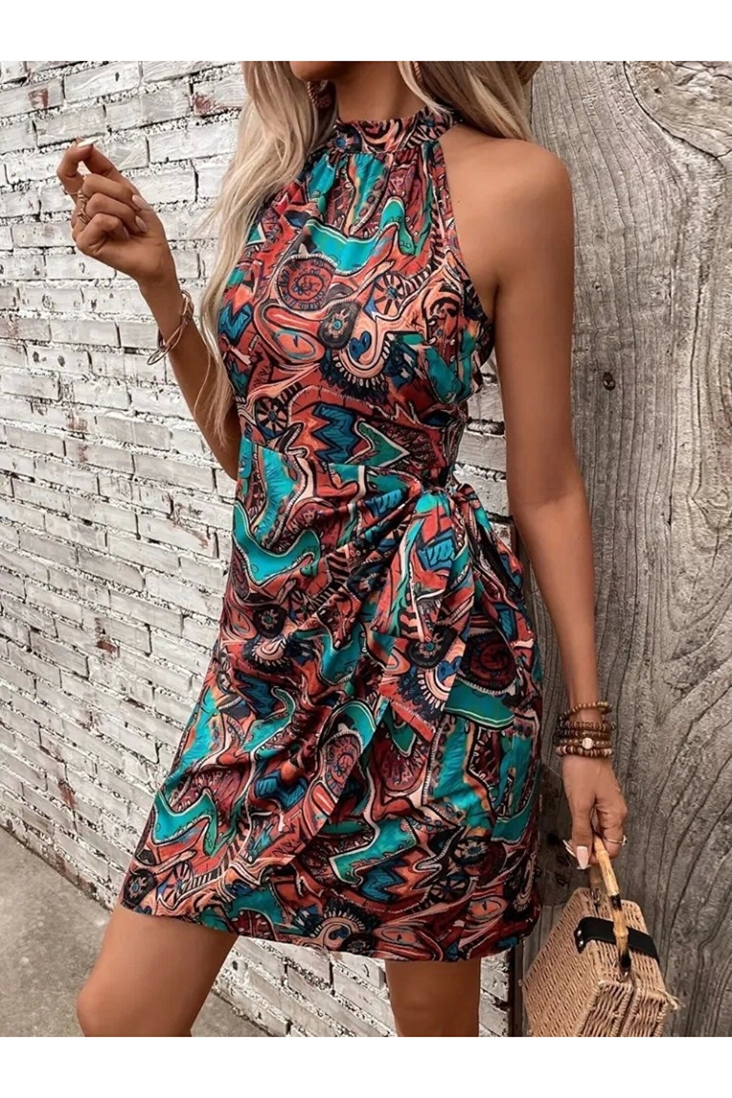 Kadın Omuzlardan Açık Yarı Balıkçı Yaka Yandan çapraz Bağlama Detaylı Süprem Kısa Elbise