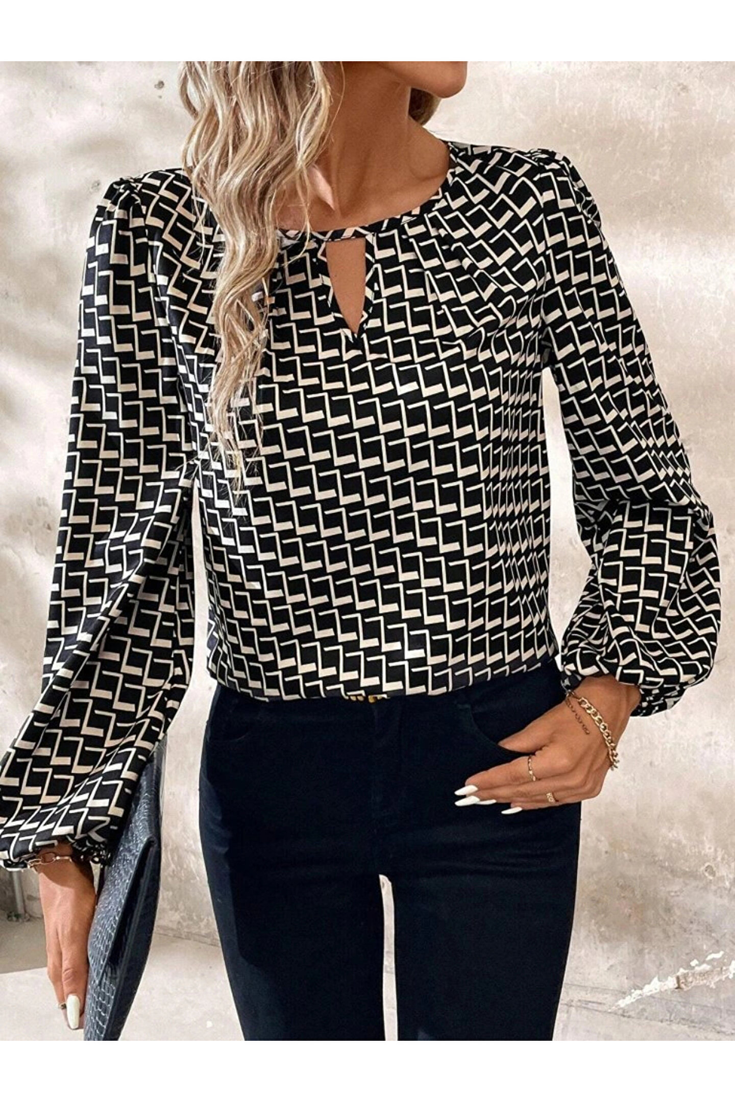 ARONA Kadın Uzun Kollu Damla Detaylı Yaka Desenli Süprem Bluz