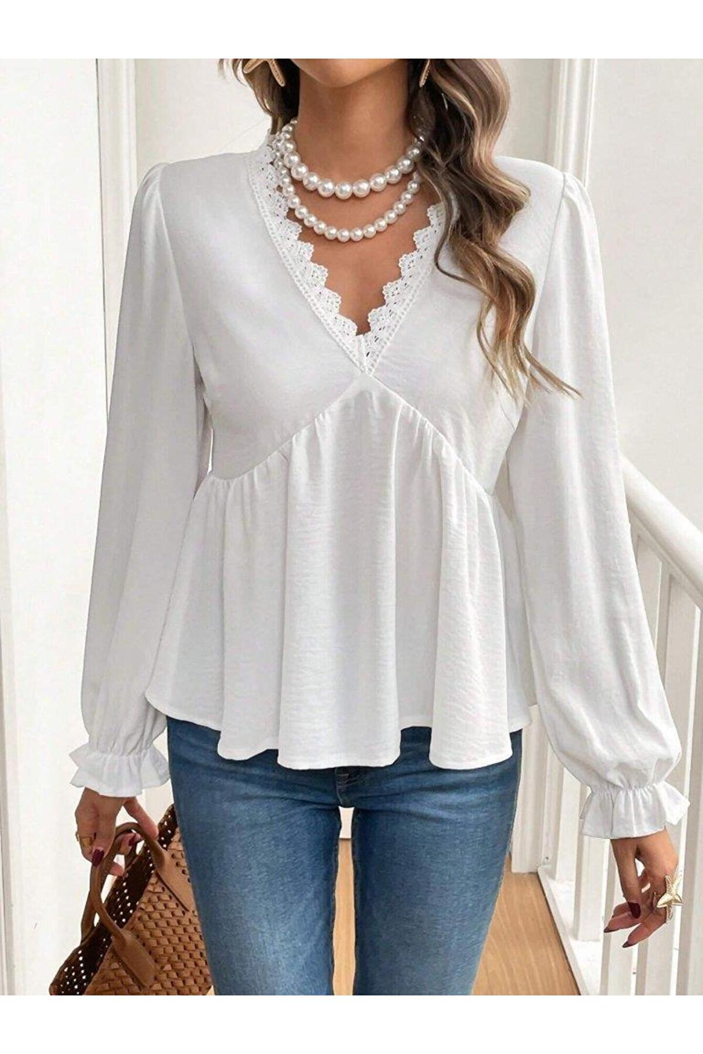 ARONA Kadın Uzun Kollu V Dantel Yaka Aerobin Bluz