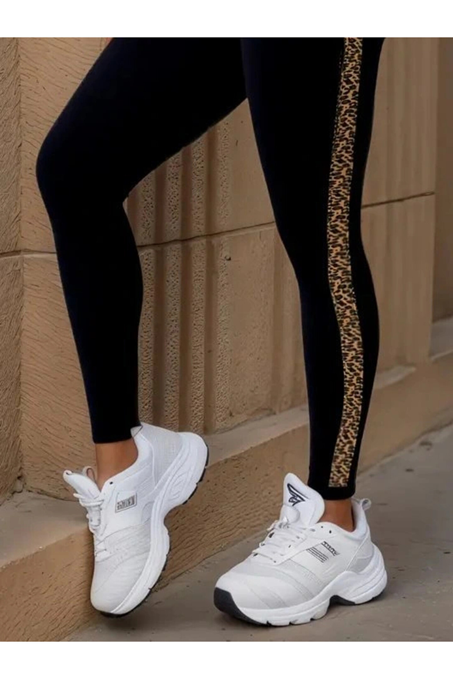 Kadın Yüksek Bel Yandan Leopar Desen Detaylı Dalgıç Tayt