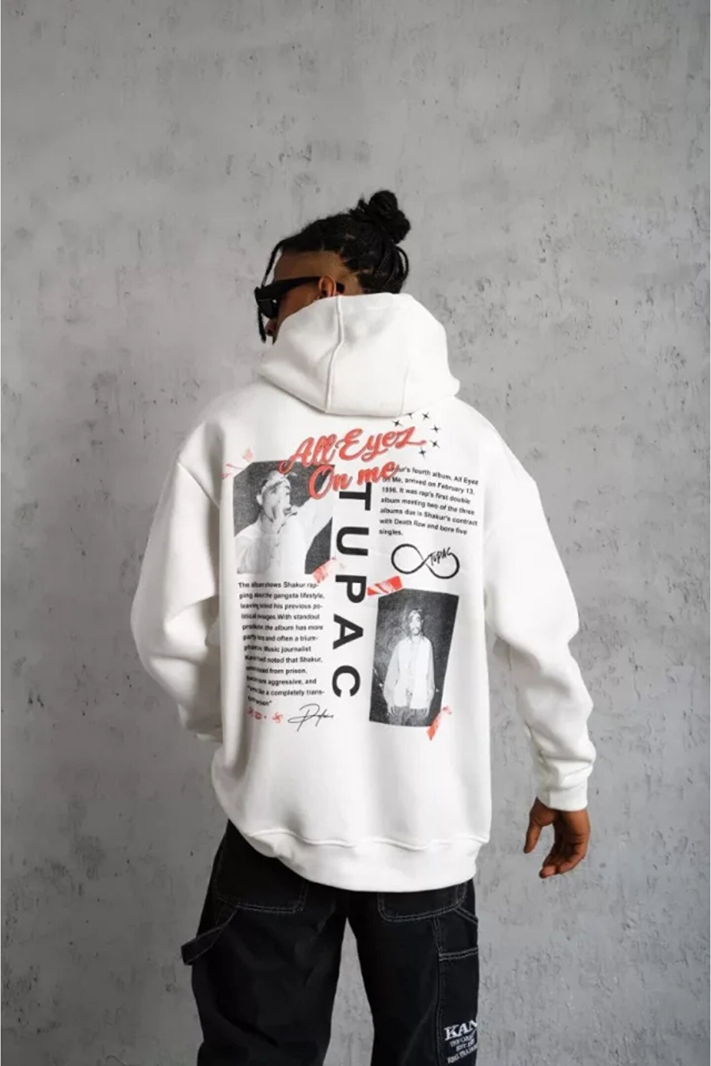 Erkek Ön Arka Baskılı Kapşonlu Sweat - Beyaz