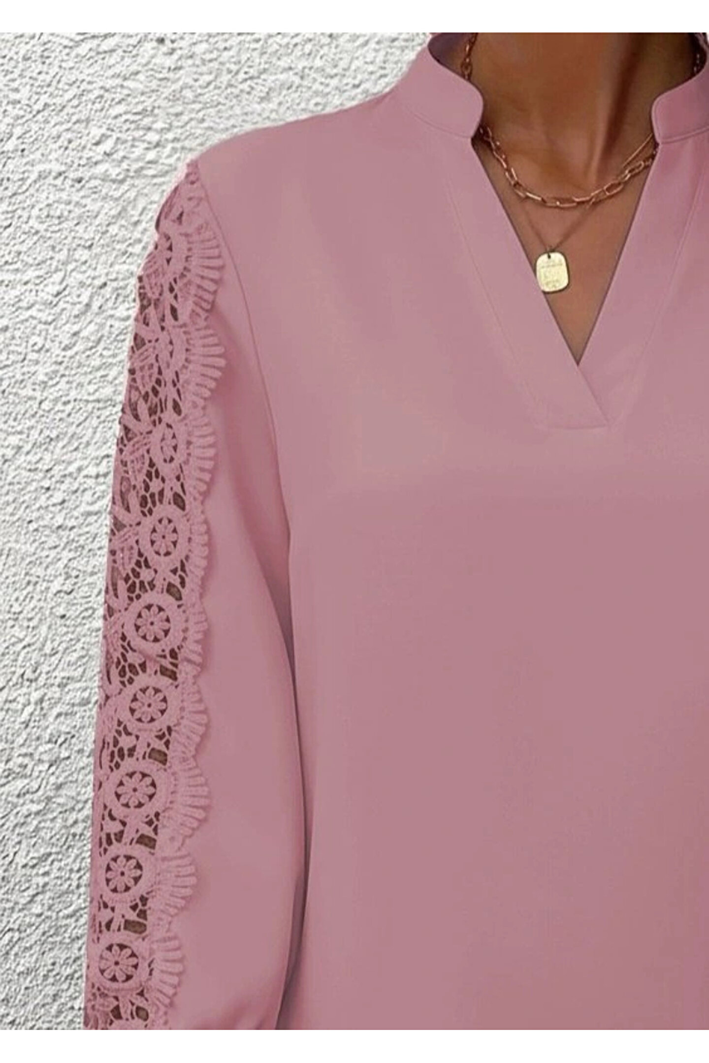 Kadın Uzun Kollu Hakim Yaka Kolları Dantel Detaylı Ithal Krep Bluz