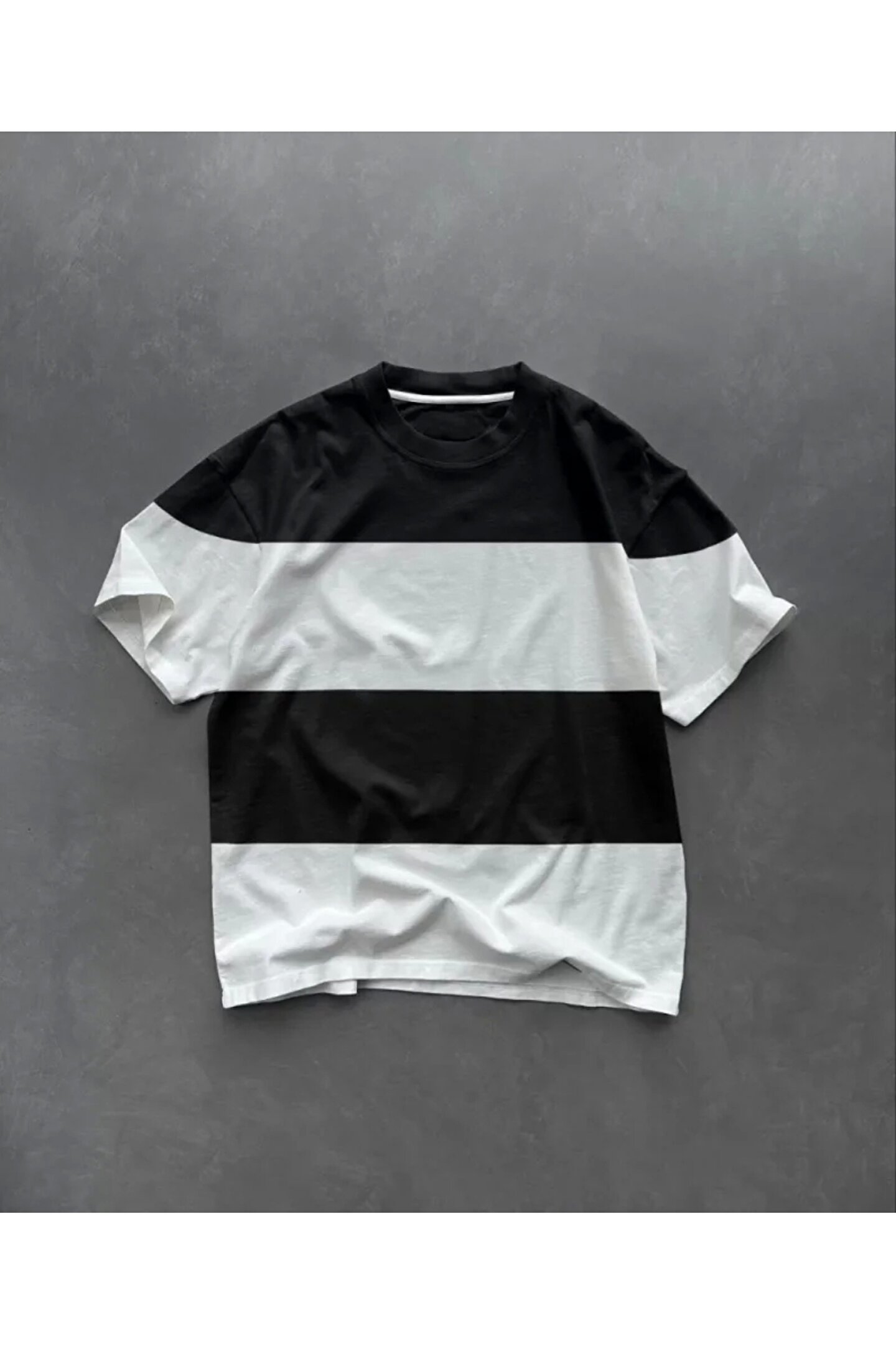 Unisex Bisiklet Yaka Parçalı T-Shirt - Siyah Modelin Ölçüleri: Boy:165, Kg:55, Göğüs:90, Bel:72, Kalça: 100 Modelin üzerindeki ürün M/38 bedendir