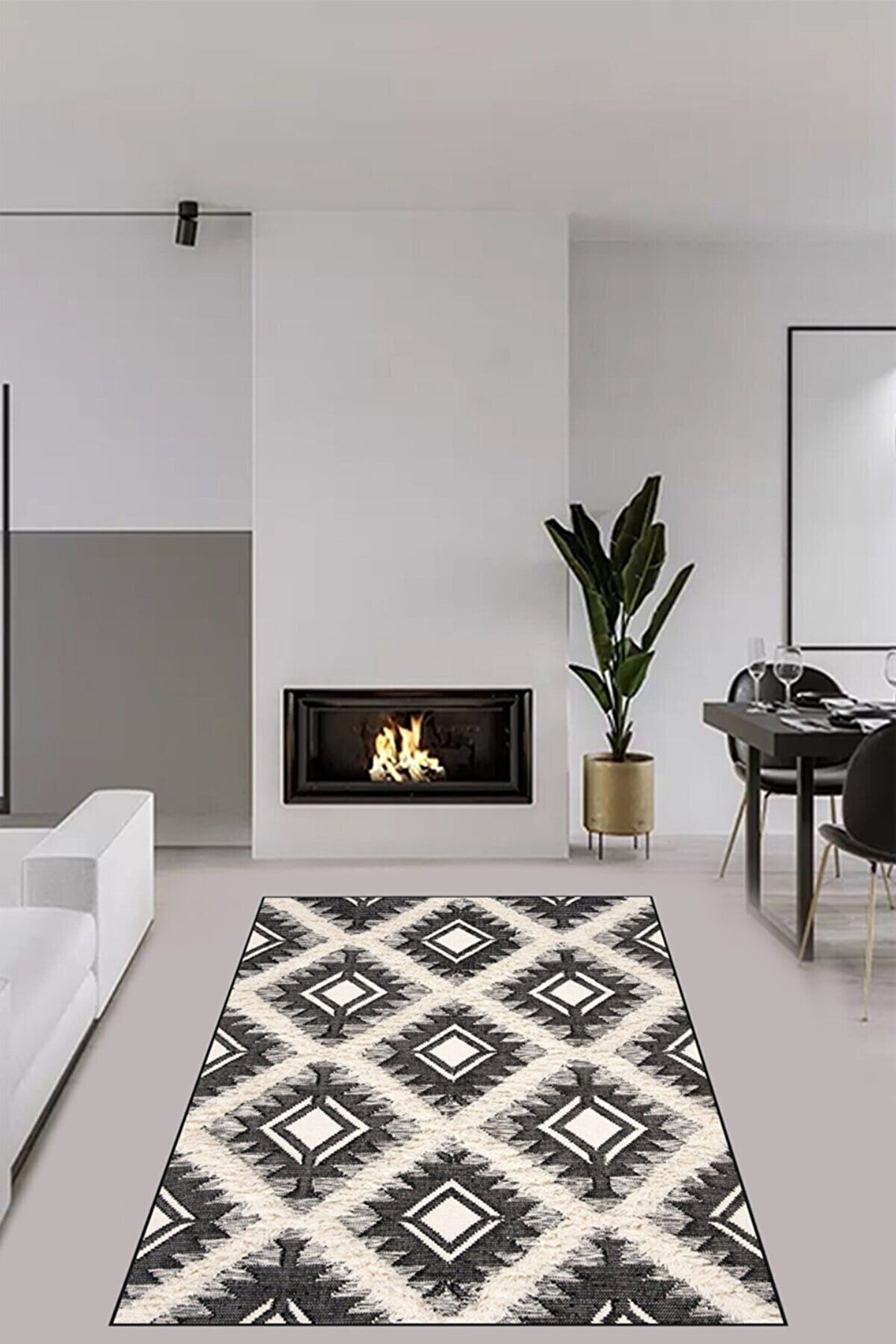 Dijital Baskı Yıkanabilir Kaymaz Taban Dörtgen Desen Salon Halısı Ve Kilim Yolluk Halı