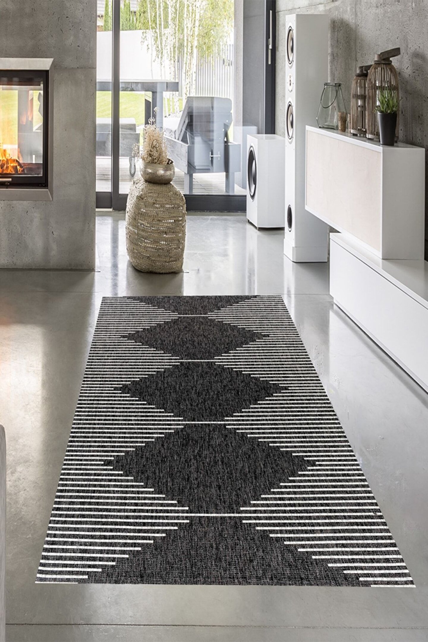 Dijital Baskı Yıkanabilir Kaymaz Taban Gri Zemin Mozaik Desenli Kilim Ve Yolluk Halı