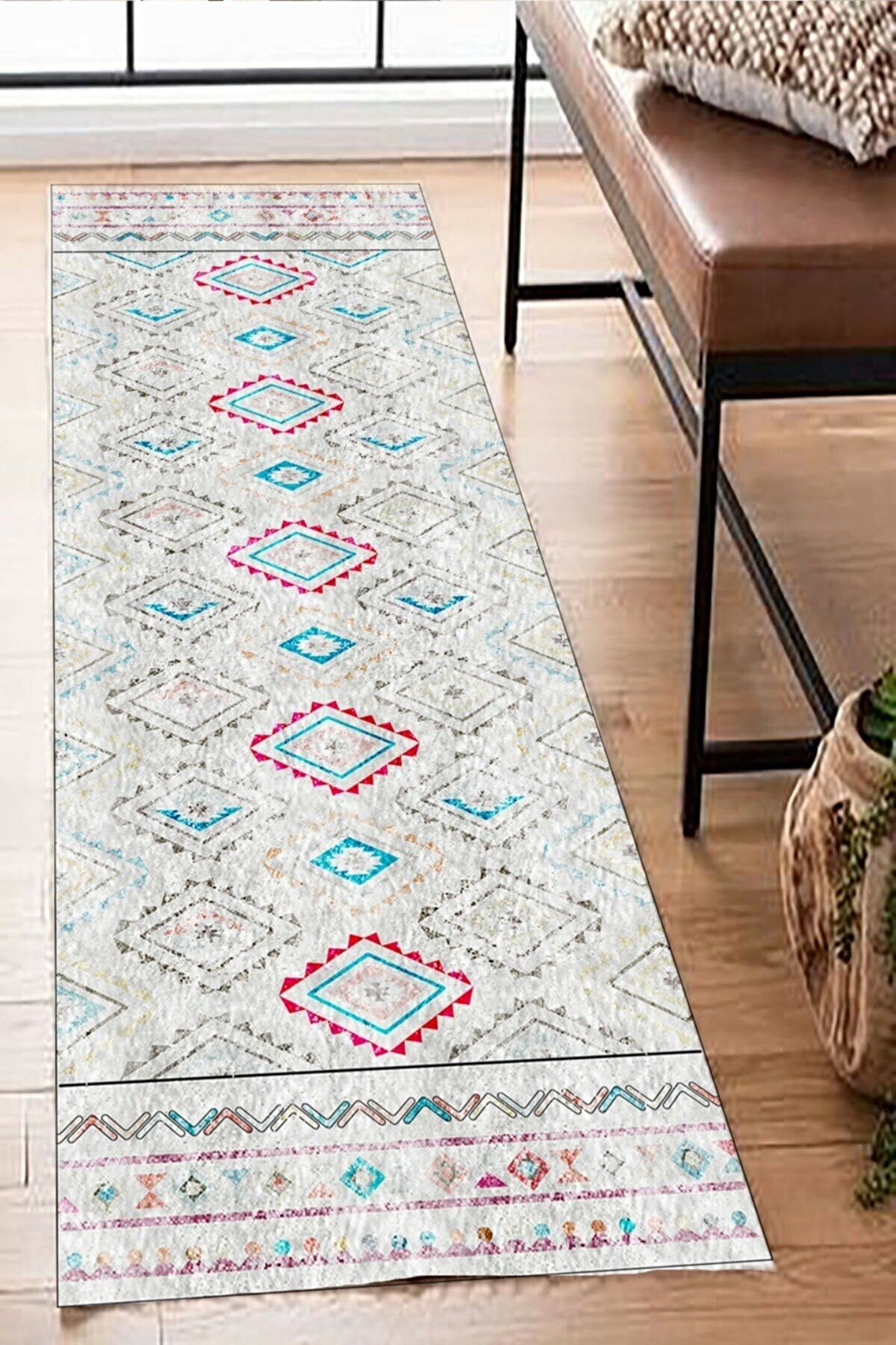 Dijital Baskı Yıkanabilir Kaymaz Taban Iskandinav Model Kilim Desenli Yolluk Halı