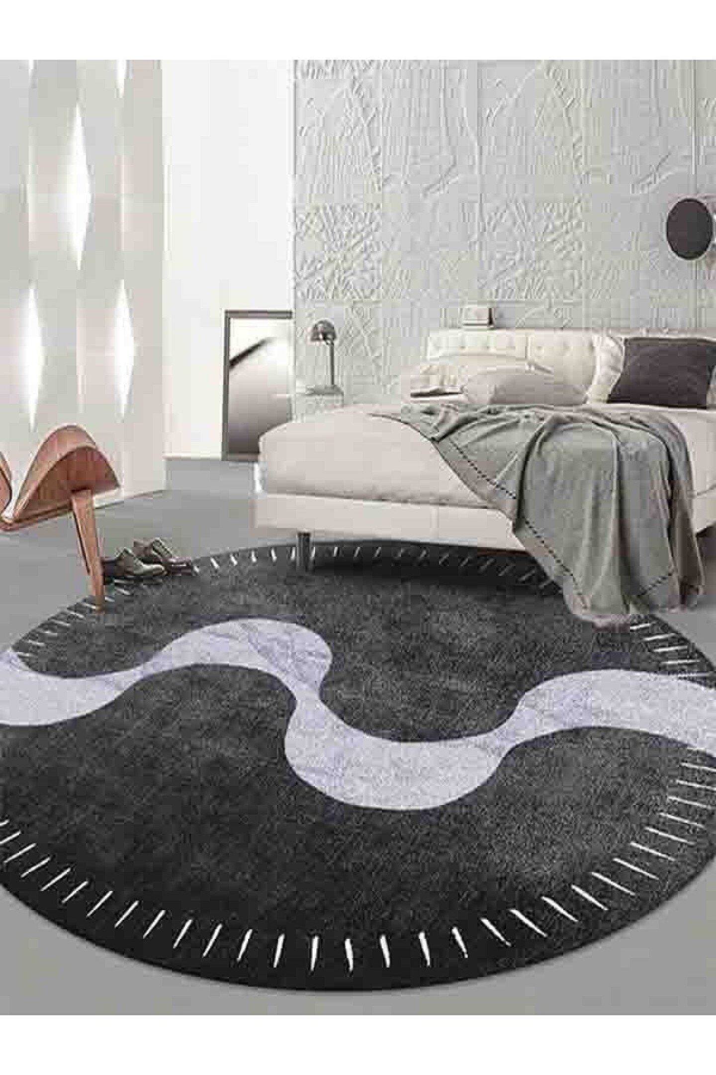 Dijital Baskı Yıkanabilir Kaymaz Taban Modern Yuvarlak Gri Desenli Halı