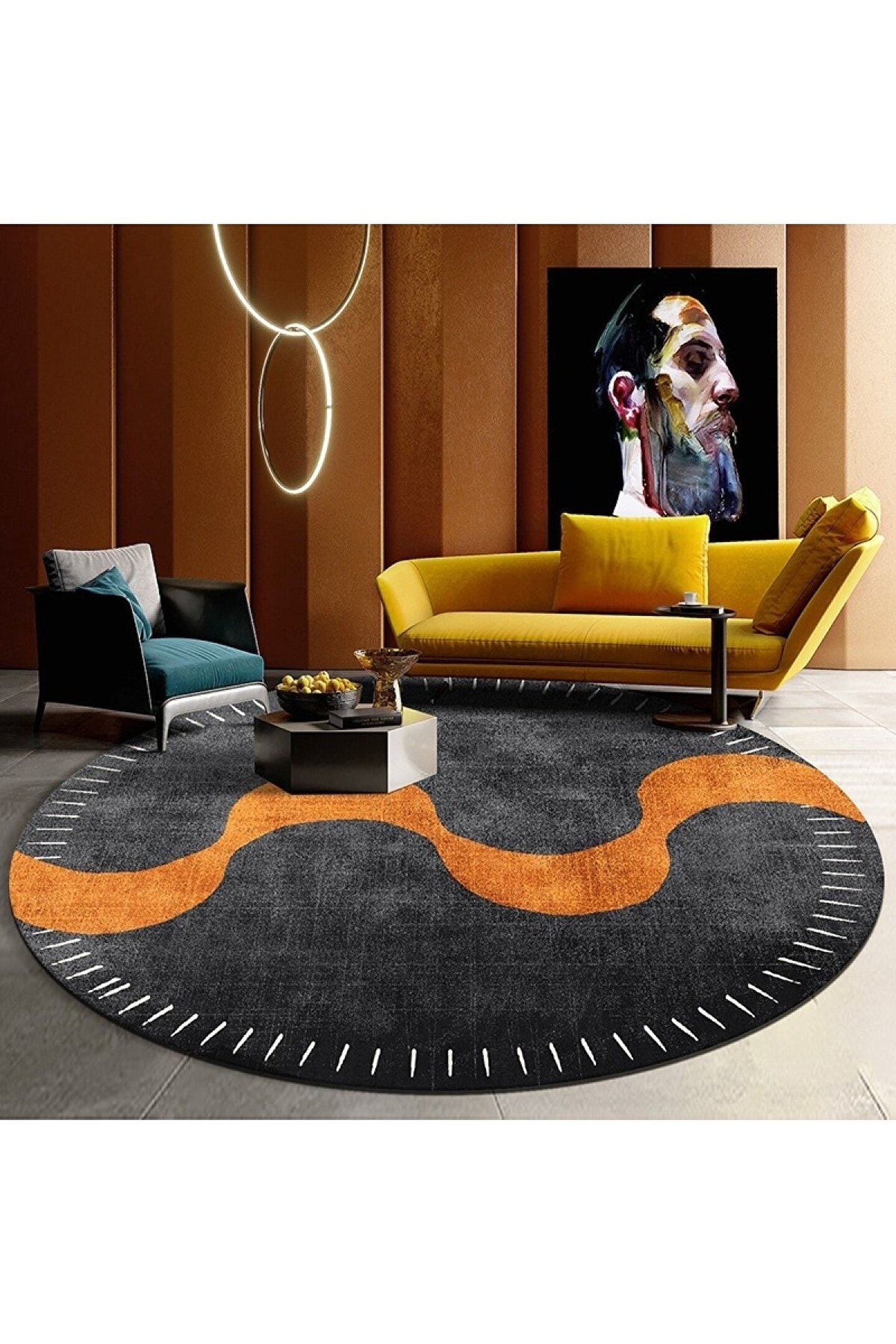 Dijital Baskı Yıkanabilir Kaymaz Taban Modern Yuvarlak Turuncu Desenli Halı