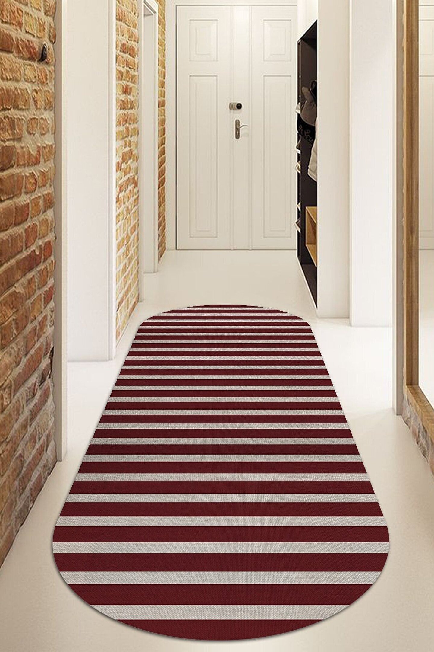 Dijital Baskı Yıkanabilir Kaymaz Taban Yatay Kırmızı Çizgili Salon Halısı Ve Kilim Yolluk Halı