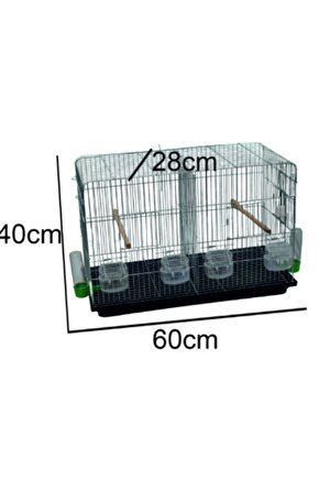 Çifthane Ve Üretim Kafesi Bölmeli 60X28X40 Çifthane ve üretim kafesi bölmeli; Kanarya, finç ve muhabbet kuşları için üretim kafesi olarak kullanılır.; Ölçüleri: 60 x 28 x 40 cm 4 kapılı, altı ızgaralı,; Ortadan ikiye bölme aparatlı bölmesi sürgülüdür ve çıkarılabilir; Krom kaplıdır. Boyalı değildir.; 4 adet yemlik 2 adet suluk 2 adet tünek ile birlikte gelmektedir;