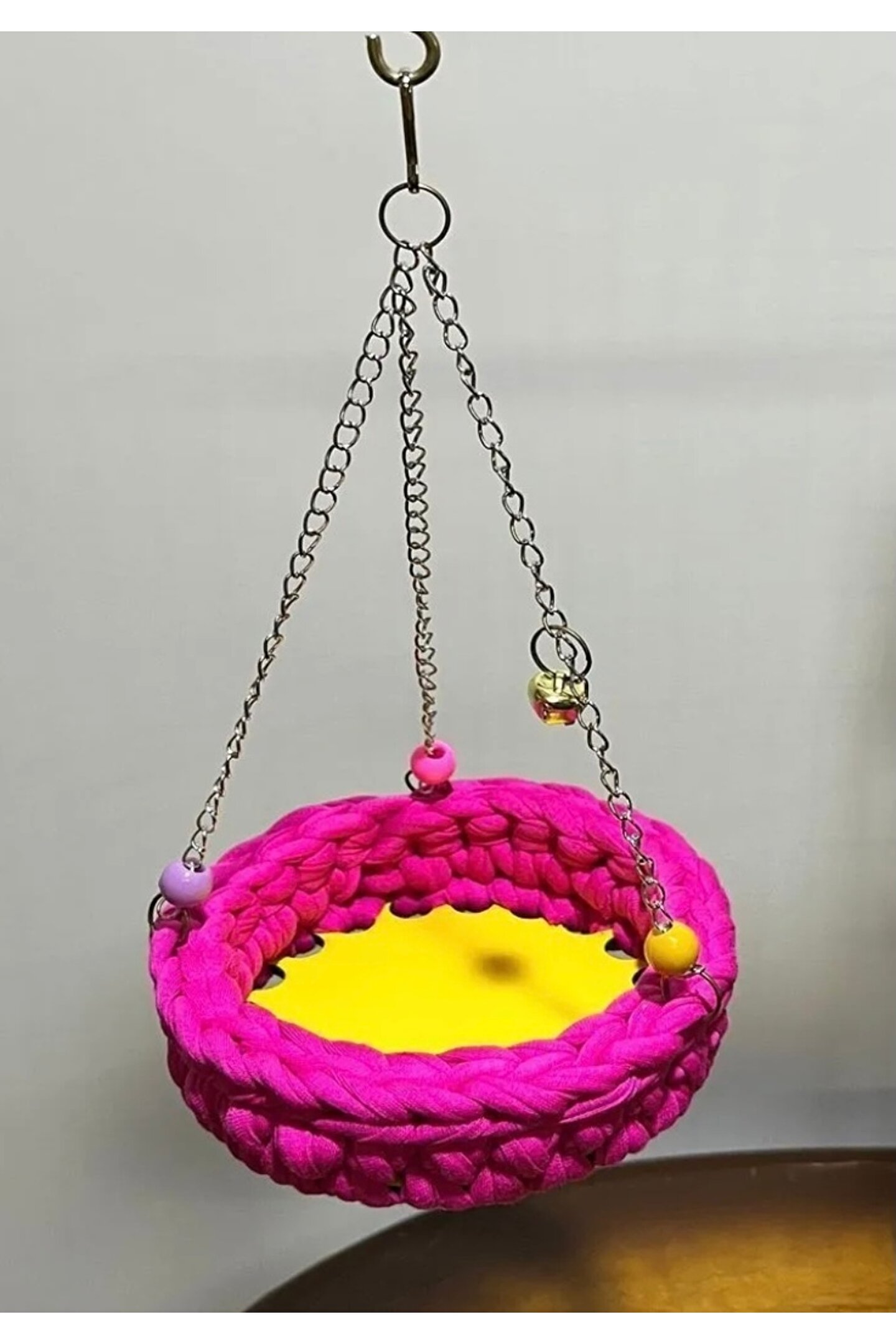 Tamamen el örgülü kuş hamağı zilli kuş salıncağı çok eğlenceli kuşların ilgilisini çeken bir oyuncaktır