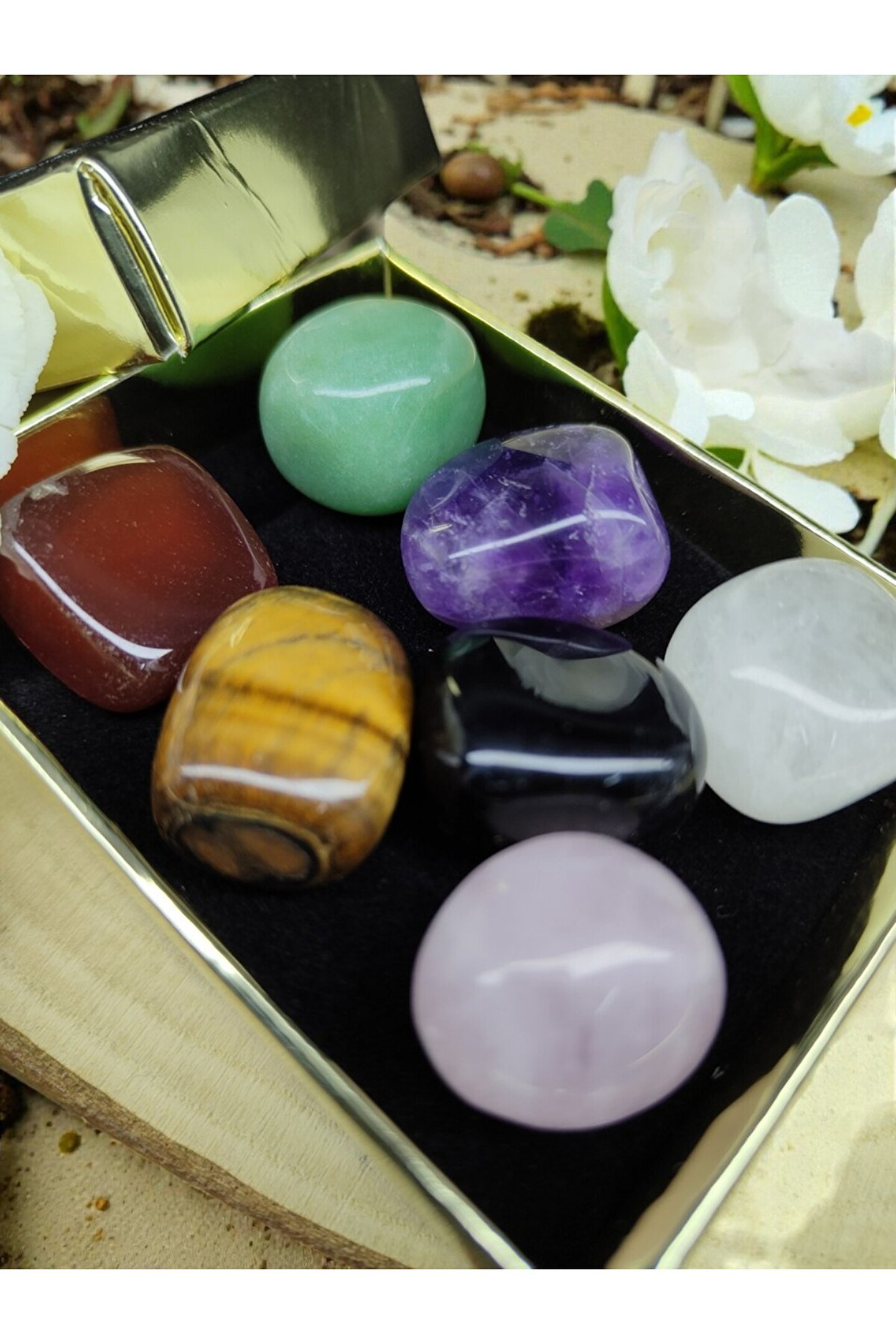- Doğanın enerjisini taşıyan bu çakra taşları, ruhsal denge ve uyum arayanlar için idealdir.; - Her biri benzersiz desenlere sahip olan bu doğal taşlar, doğanın sunduğu güzellikleri evinize taşır.; - Türkiye'nin zengin doğal kaynaklarından elde edilen bu çakra taşları, yerel üretimdir ve kalite standartlarına uygundur.; - Sertifikalı olmasıyla güvenilirliği kanıtlanmış olan bu taşlar, koleksiyonunuza değerli bir katkı sağlar.;