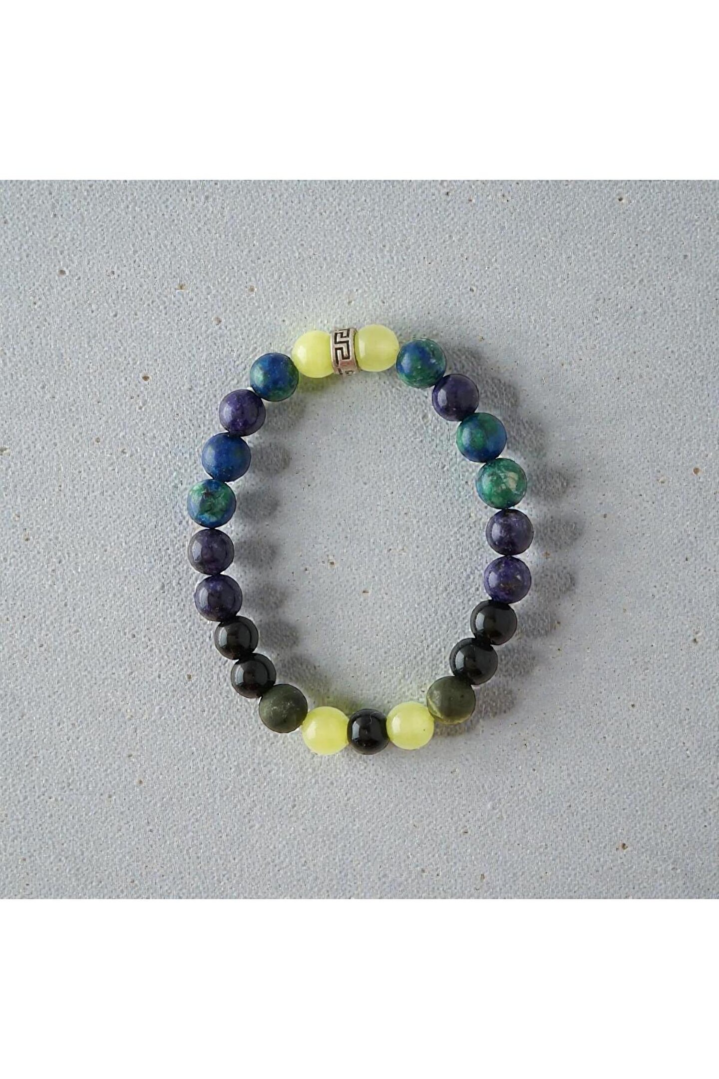 - Sertifikalı Onix, Yeşim, Ametist ve Beyaz Akik taşlarından oluşan zarif bir tasarım.; - Doğal taş kullanımıyla her bir parça benzersiz ve otantik bir görünüm sunar.; - Unisex tasarımı sayesinde hem kadınlar hem de erkekler için uygun bir aksesuar seçeneği.; - Türkiye menşeli olmasıyla yerel üretim ve kaliteyi bir arada sunar.; - Yetişkin yaş grubuna hitap eden şık ve modern bir aksesuar tercihidir.;