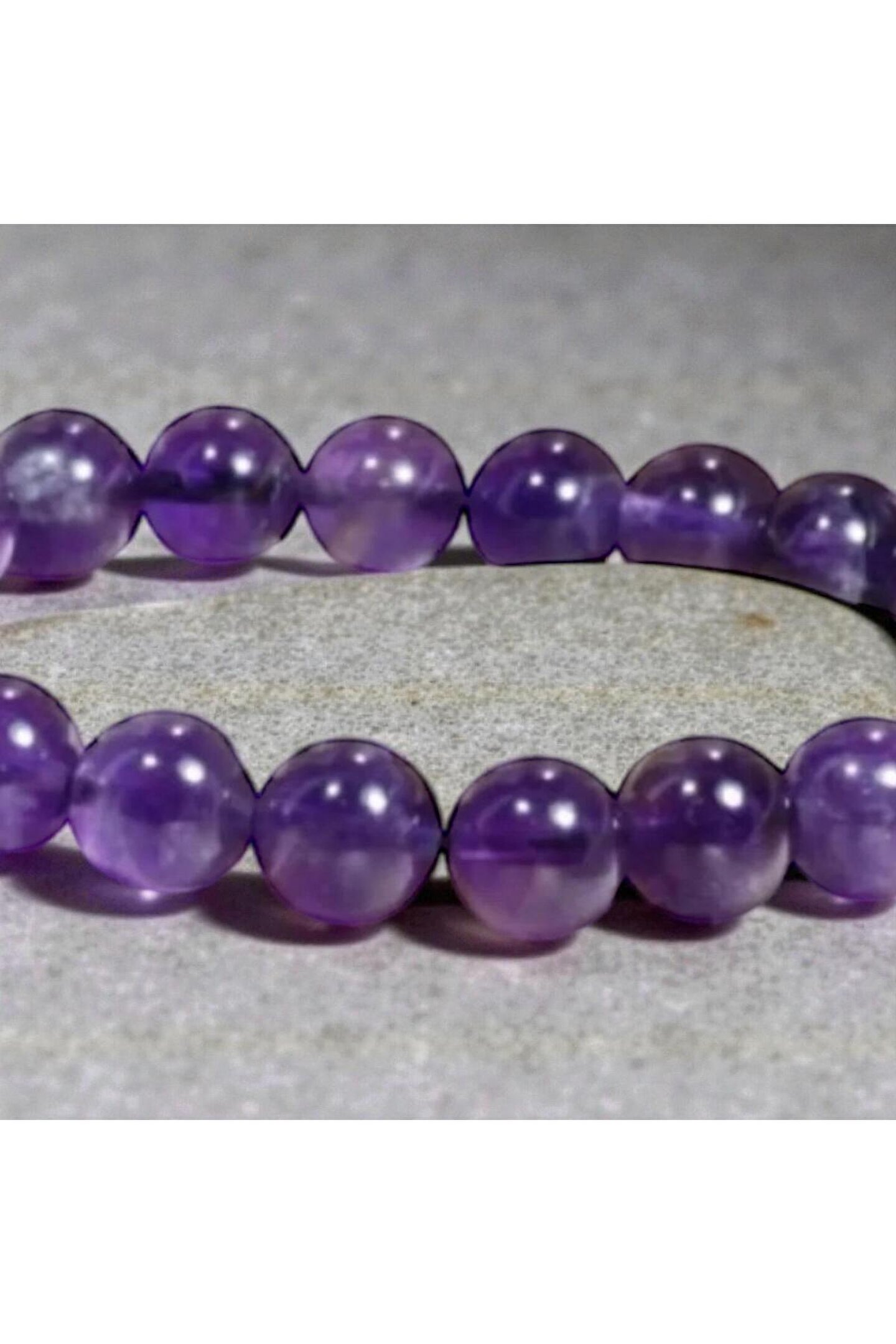 - Doğal ametist taşından üretilmiş, her biri benzersiz desenlere sahip 8 mm çapında boncuklar içerir.; - Unisex tasarımı sayesinde hem kadınlar hem de erkekler tarafından rahatlıkla kullanılabilir.; - Türkiye'de üretilmiş olup, yerel işçiliğin ve doğal kaynakların kalitesini yansıtır.; - Genç yaş grubuna hitap eden modern ve şık bir aksesuar seçeneği sunar.; - Diğer özellikleriyle öne çıkan bu bileklik, günlük kullanım için idealdir.;