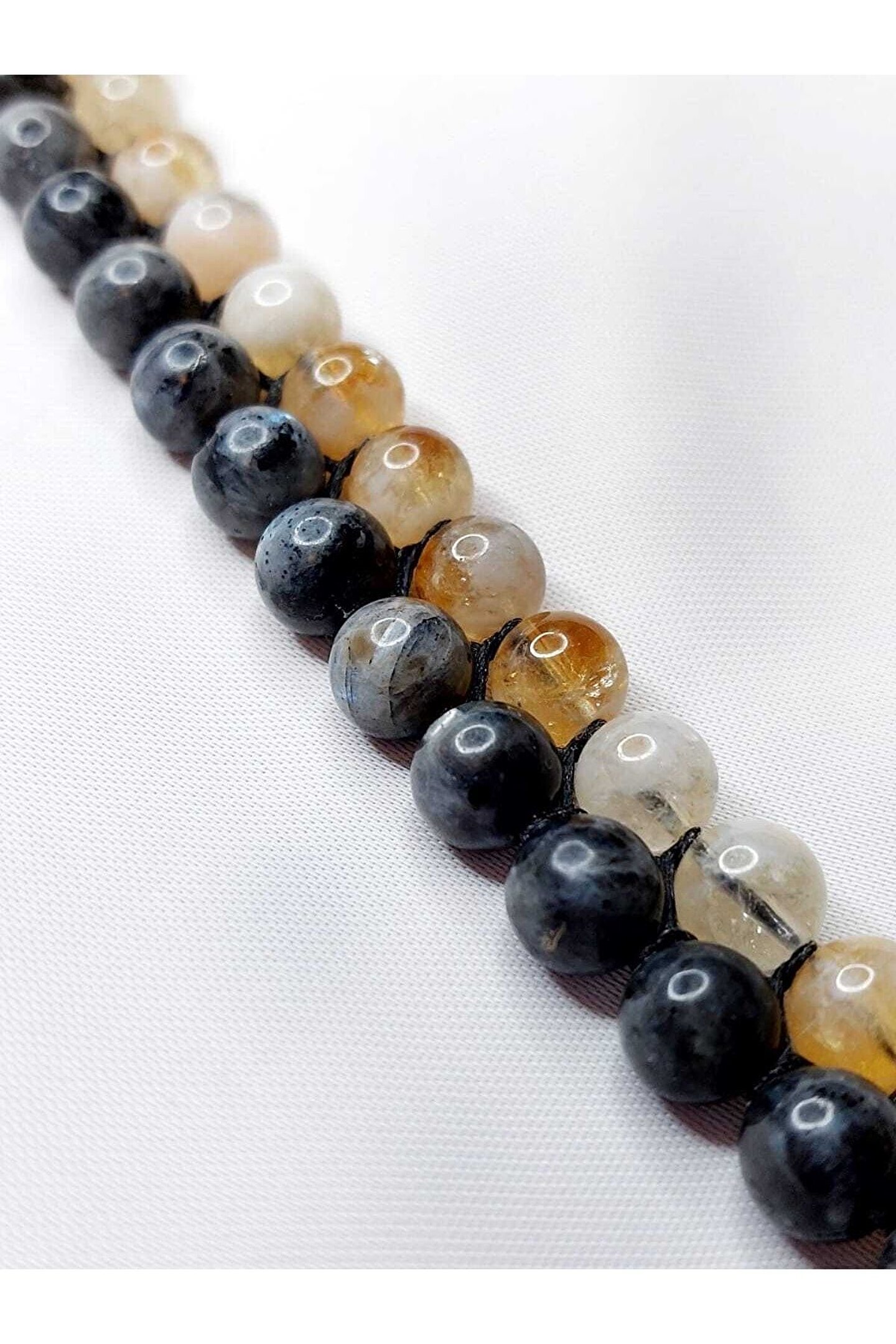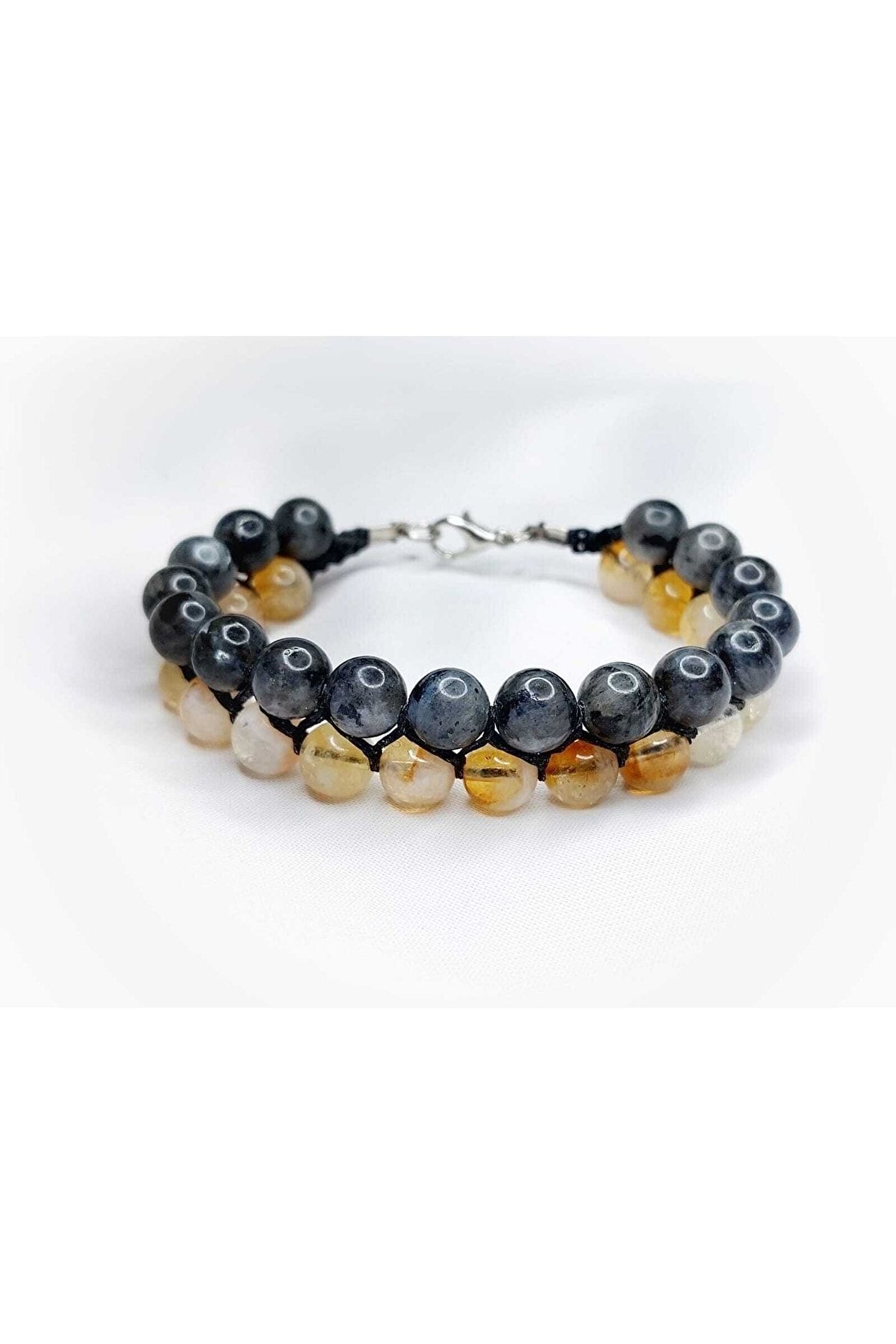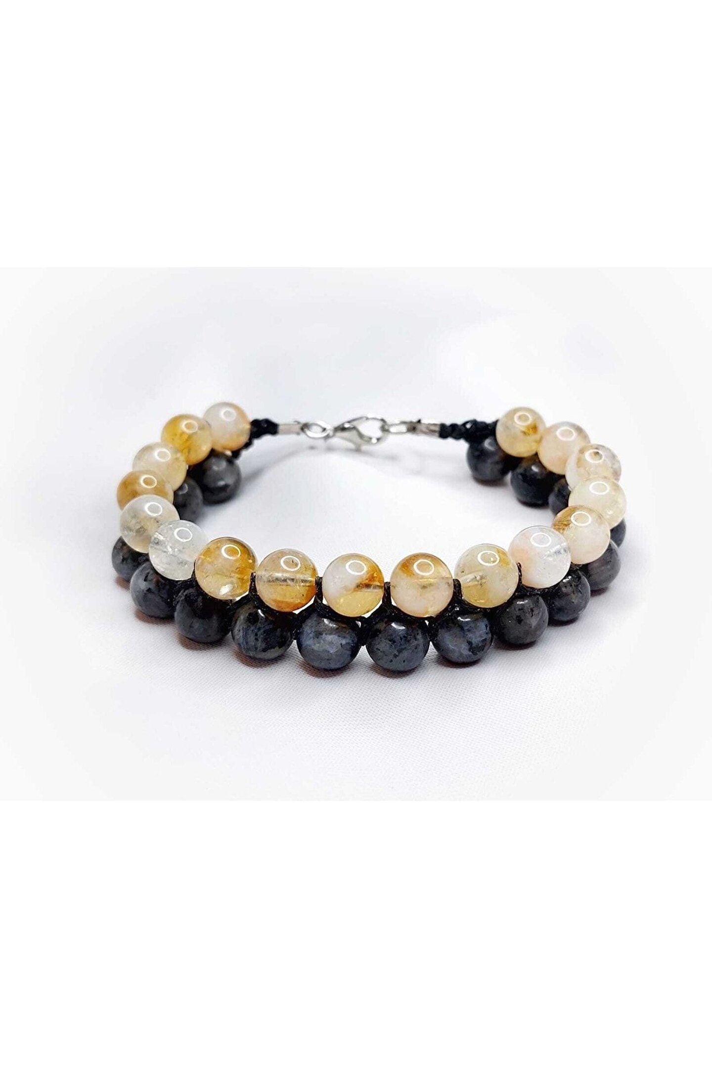 Doğal taş kullanımı, her bir bilekliğin benzersiz ve otantik bir görünüm kazanmasını sağlar; Gümüş kaplama detayları ile hem şıklığı hem de dayanıklılığı bir arada sunar; Sitrin ve spektrolit doğaltaşların uyumlu kombinasyonu, bilekliğe zarif bir parlaklık katar; Özel tasarımıyla dikkat çeken bu bileklik, günlük kullanım için idealdir ve her türlü kıyafetle uyum sağlar;