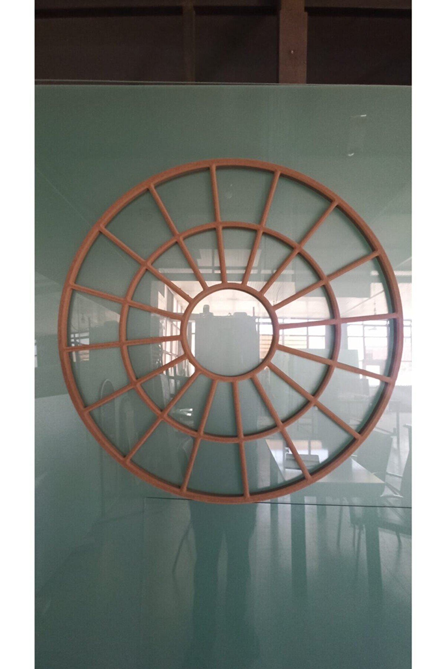 - Asimetrik tasarımı ile modern ve şık bir görünüm sunar, mekanınıza estetik bir dokunuş katar; - Dayanıklı ahşap malzemesi sayesinde uzun ömürlü kullanım vaat eder ve dekoratif özelliğini korur; - Duvar aynası olarak tasarlanmış olup, geniş 90 cm çapında yuvarlak formuyla geniş bir yansıma alanı sağlar;