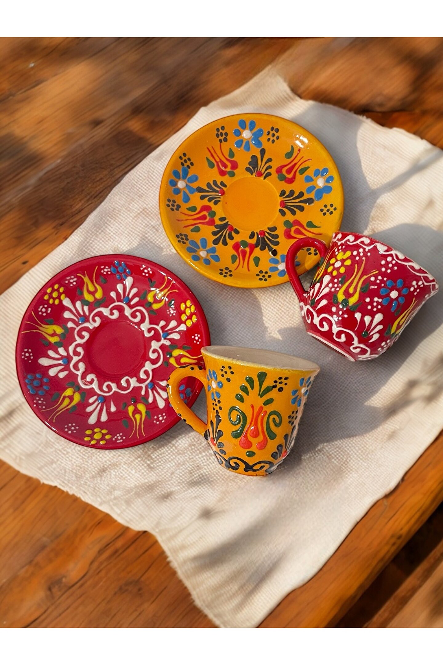 El emeği göz nuru: Her bir fincan, tamamen el yapımı seramik malzemeden üretilmiştir, bu da her fincanda benzersiz bir dokunuş ve kaliteyi hissettirir; Klasik tasarım: Lale çini desenleriyle süslenmiş bu fincan seti, klasik ve zamansız bir tarzı yansıtarak sofralarınıza şıklık katar; İki kişilik kullanım: 2 kişilik set, kahve keyfinizi paylaşmak için idealdir; sevdiklerinizle birlikte keyifli anlar yaratmanızı sağlar;