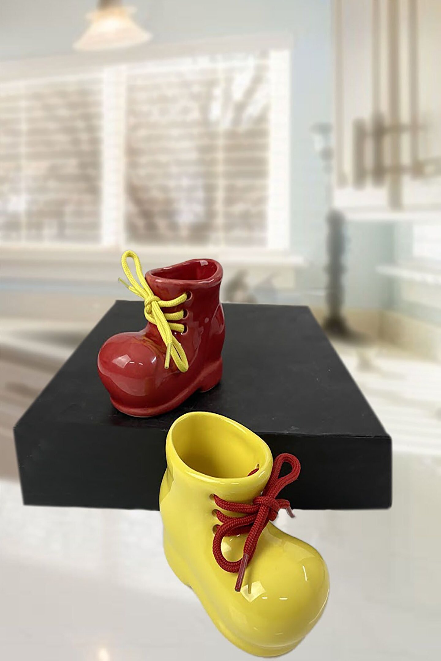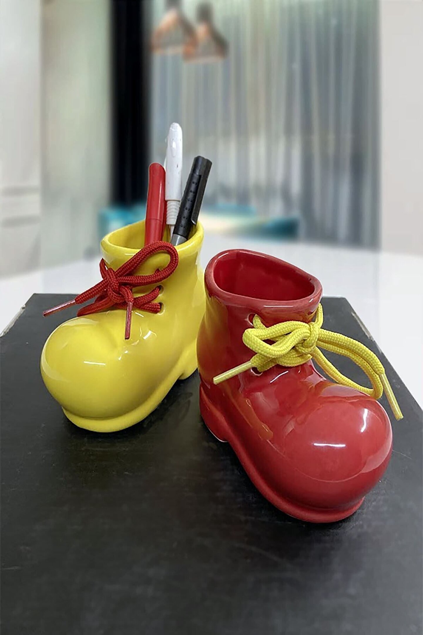 Kendiniz yada sevdikleriniz için bir hediye arıyorsanız estetik ve sempatik görünümü ve kaliteli yapısı ile bu kalemlikler sizler için zarif bir seçenek olacaktır. Tamamen el dökümüdür. Yüksek kalitede seramik malzemeden yapılmış dekoratif ve dayanıklıdır. Öğrenci evinizde veya ofisinizde masa üzeri çok dekoratif ve kullanışlı bir aksesuar olacaktır. ; Dekoratif 2'li Masa Üstü Seramik Sarı-Kırmızı Dekorlu Bot İpli Kalemlik - Sukulent Saksı ; Keyifli Alışverişler Diliyoruz. :) ;