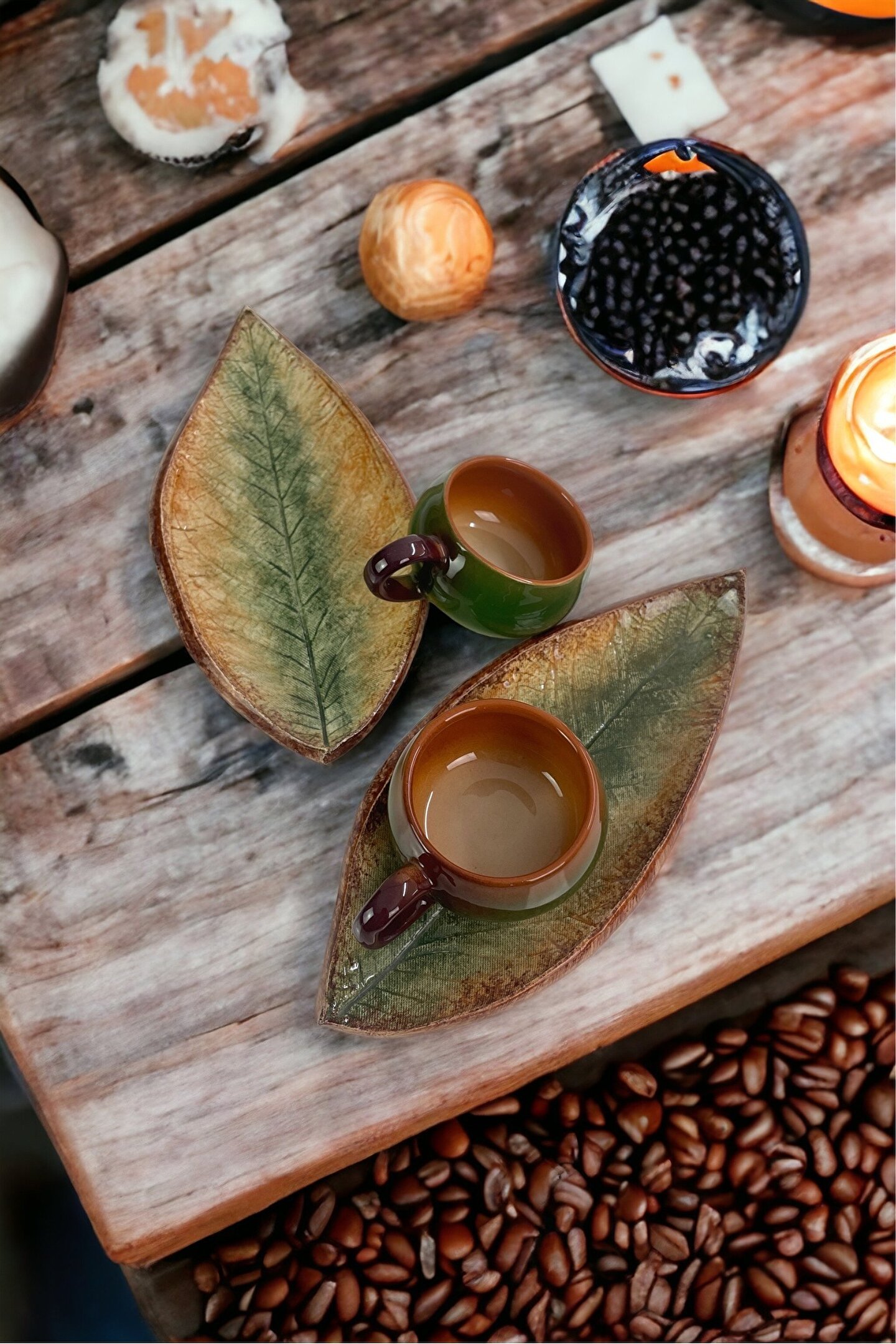 Kendiniz yada sevdikleriniz için bir hediye arıyorsanız estetik görünümü, organik tasarımı ve kaliteli yapısı ile bu fincan takımı sizler için zarif bir seçenek olacaktır. :) Setin her parçası özenle tasarlanmış olup tamamen el yapımıdır. Yüksek kalitede seramik malzemeden yapılmış ince, hafif ve oldukça dayanıklıdır. Usta ellerin emeği ile her ayrıntısının titizlikle düşünüldüğü, zarif kulpları, ağız yapısı ve müthiş renk geçişleri ile Çay-Kahve Fincanlarımız, evinize veya özel davetlerde masanıza otantik bir görsel sunacak, tüm şıklığınızı tamamlayacak ve kahve keyfinizi daha da özel hale getirecektir. ; Dekoratif ve Şık Ceviz Yaprak Figürlü 2 Kişilik Yeşil ve Kahverengi Renklerinde Çay Kahve Fincanı Seti. ; 110 cc. 2 Adet Çay Kahve Fincanı ve 2 Adet Fincan Tabağı Toplam 4 Parça. ; Çay ve Kahve İçimi İçin Uygundur. ; Bulaşık Makinası ve Mikro Dalga Fırında Kullanılabilir. ; Keyifli Alışverişler Diliyoruz. :) ;