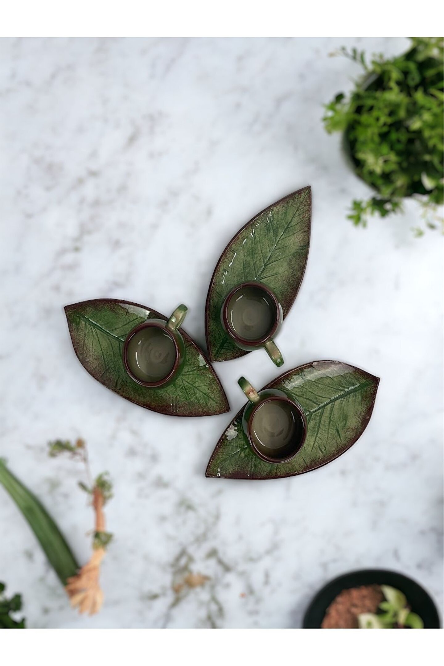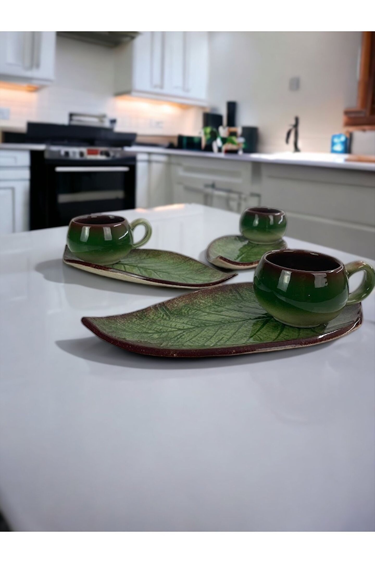 Kendiniz yada sevdikleriniz için bir hediye arıyorsanız estetik görünümü, organik tasarımı ve kaliteli yapısı ile bu fincan takımı sizler için zarif bir seçenek olacaktır. :) ; Setin her parçası özenle tasarlanmış olup tamamen el yapımıdır. ; Yüksek kalitede seramik malzemeden yapılmış ince, hafif ve oldukça dayanıklıdır. Usta ellerin emeği ile her ayrıntısının titizlikle düşünüldüğü, zarif kulpları, ağız yapısı ve müthiş renk geçişleri ile Çay-Kahve Fincanlarımız, evinize veya özel davetlerde masanıza otantik bir görsel sunacak, tüm şıklığınızı tamamlayacak ve kahve keyfinizi daha da özel hale getirecektir. ; Dekoratif ve Şık Ceviz Yaprak Figürlü 2 Kişilik Yeşil ve Kahverengi Renklerinde Çay Kahve Fincanı Seti. ; 110 cc. 2 Adet Çay Kahve Fincanı ve 2 Adet Fincan Tabağı Toplam 4 Parça. ; Çay ve Kahve İçimi İçin Uygundur. ; Bulaşık Makinası ve Mikro Dalga Fırında Kullanılabilir. ; Keyifli Alışverişler Diliyoruz. :) ;
