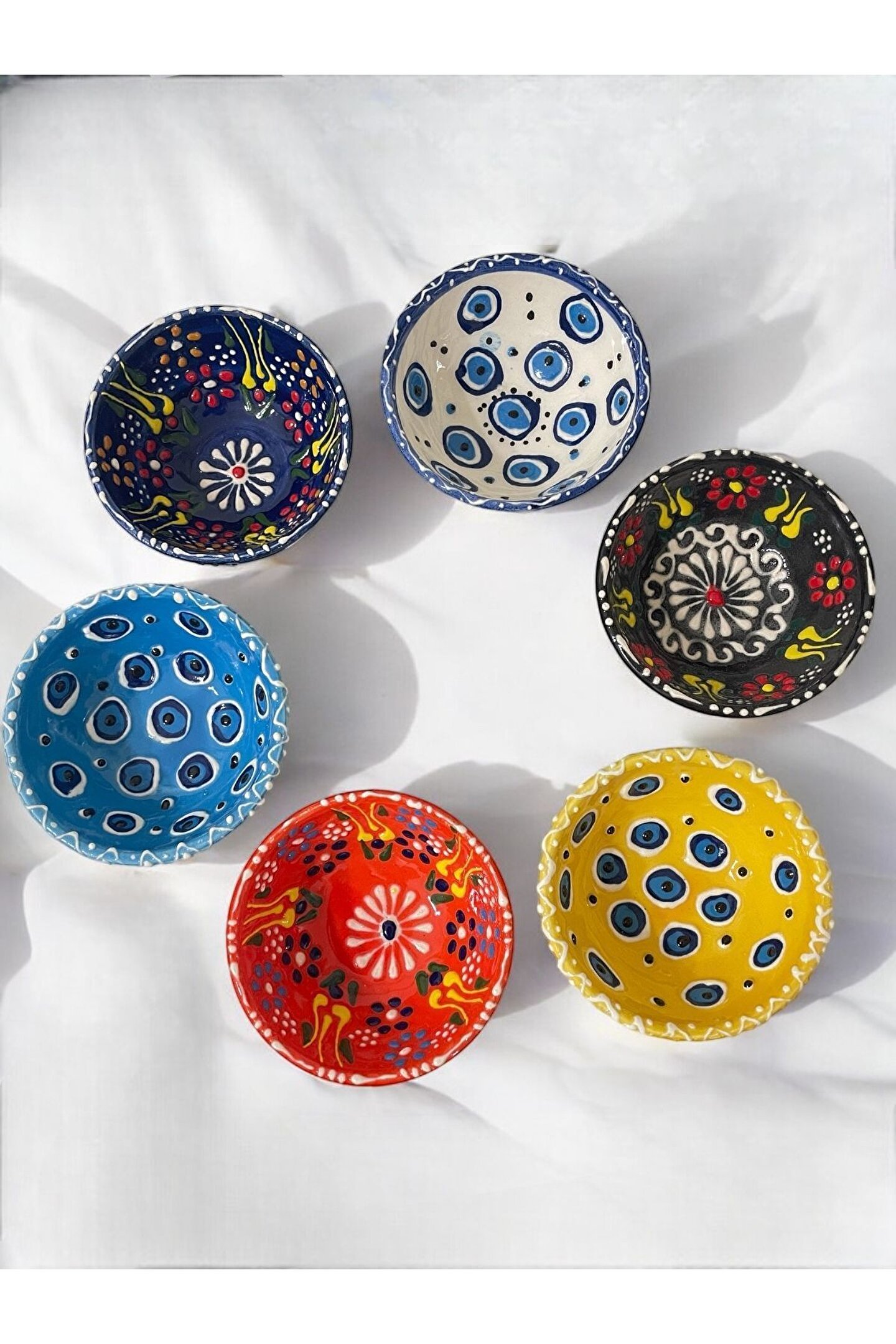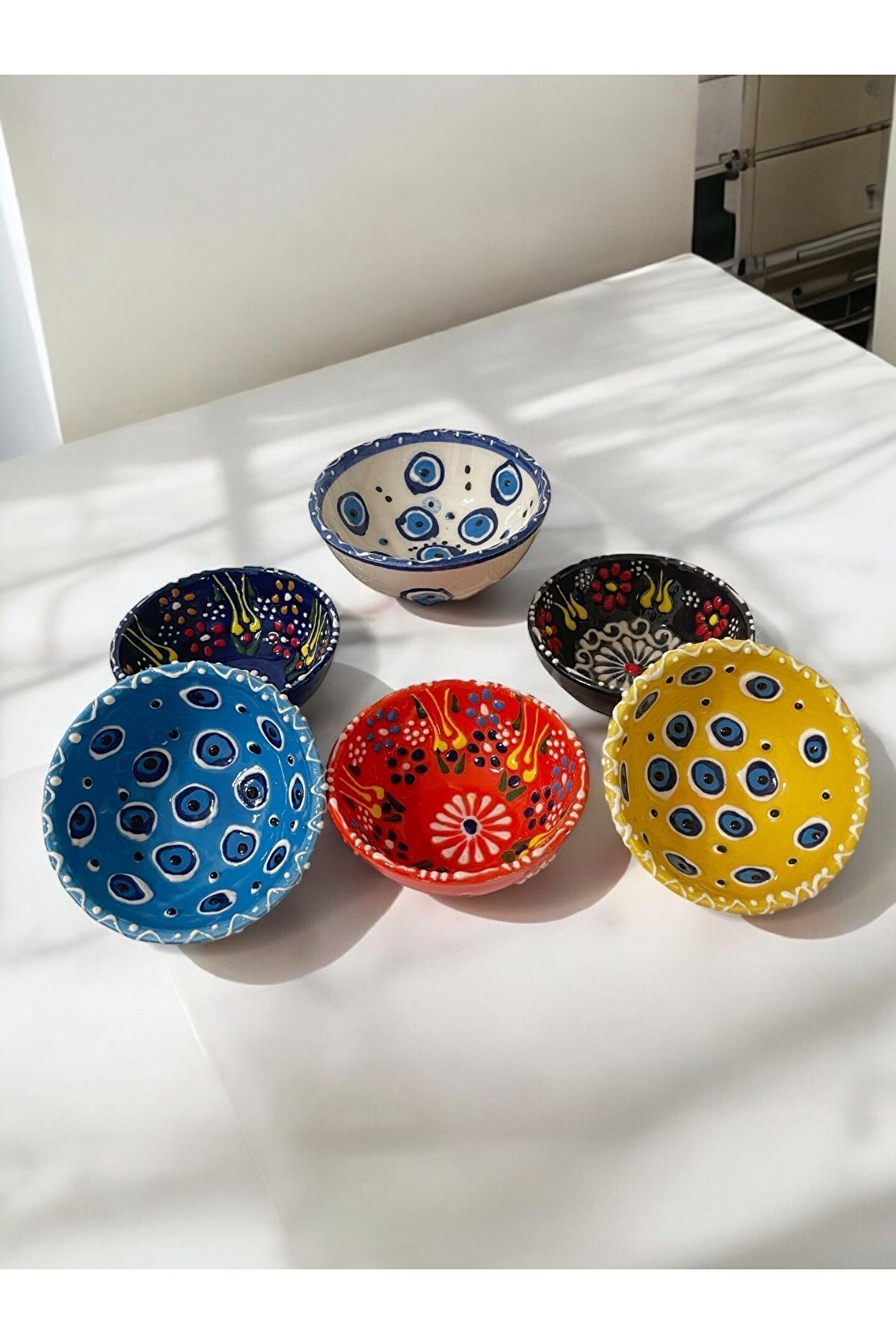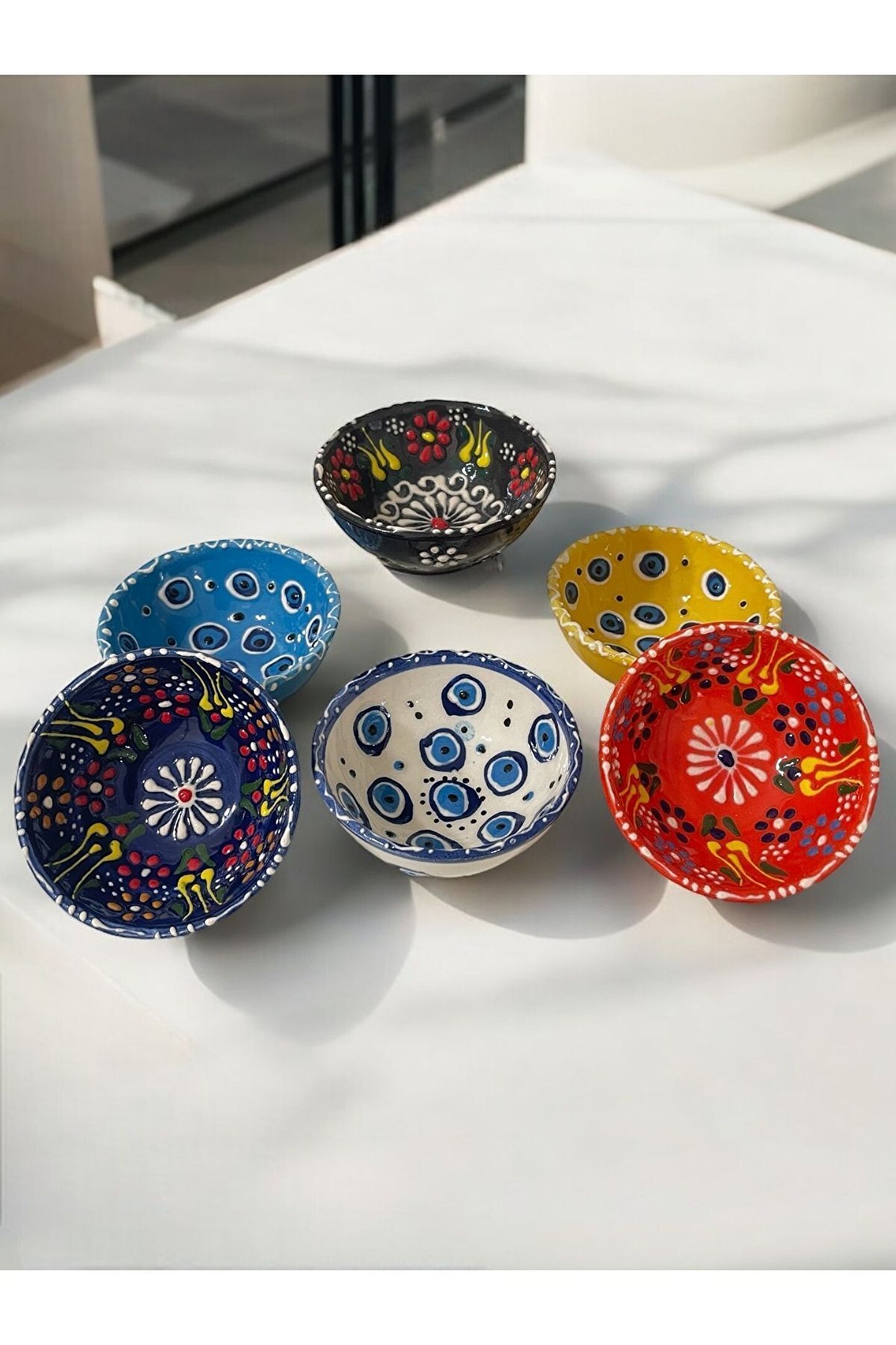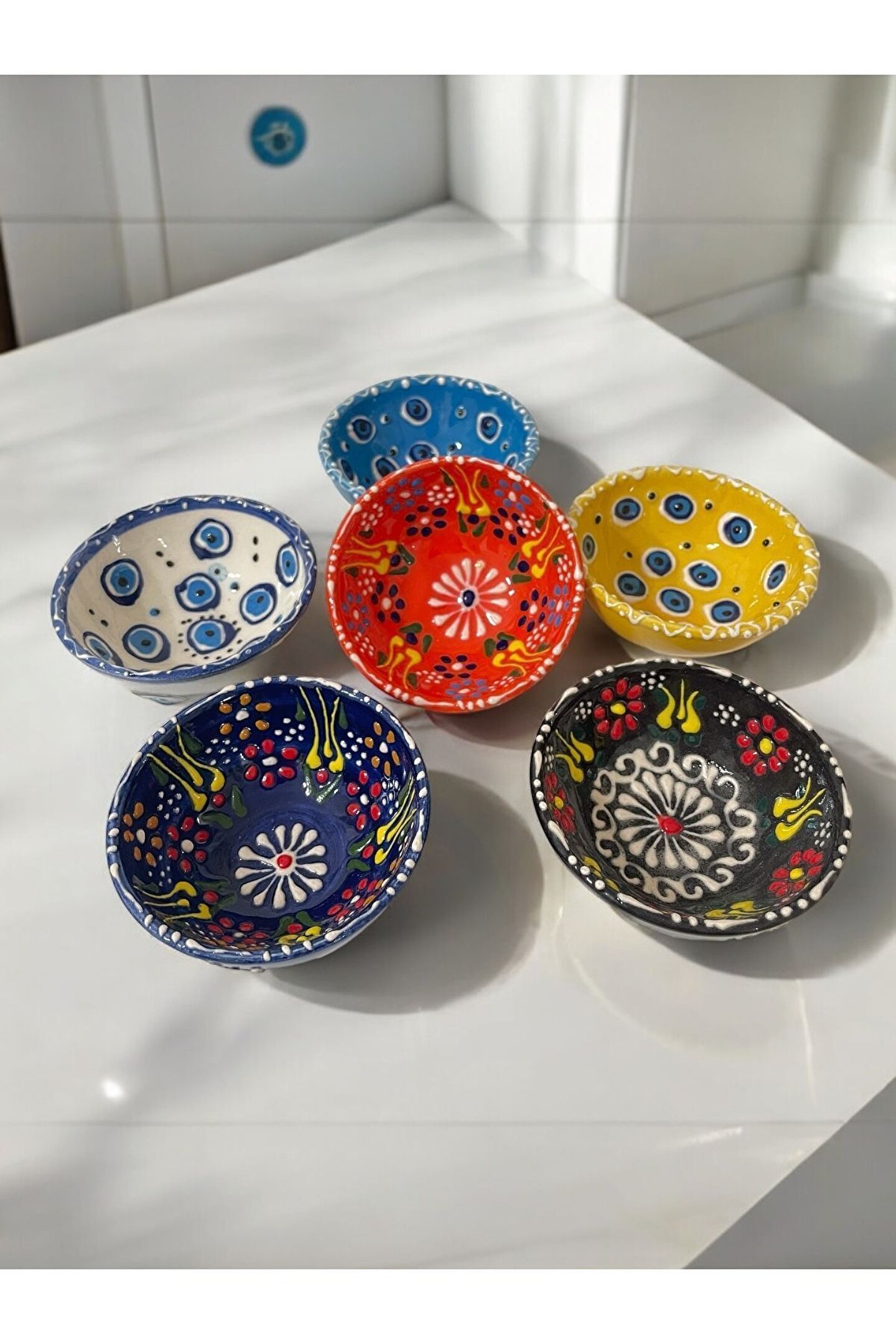 Seramik malzemesi sayesinde uzun ömürlü ve dayanıklı kullanım sunar; Dekoratif lale nazar boncuğu işlemesi ile mutfak dekorasyonunuza estetik bir dokunuş katar; Kahvaltı sofralarınızda şıklığı ve zarafeti bir arada sunan 6 adet çerezlik; Kahvaltıda sunumunuzu tamamlayacak, göze hitap eden tasarımıyla dikkat çeker;