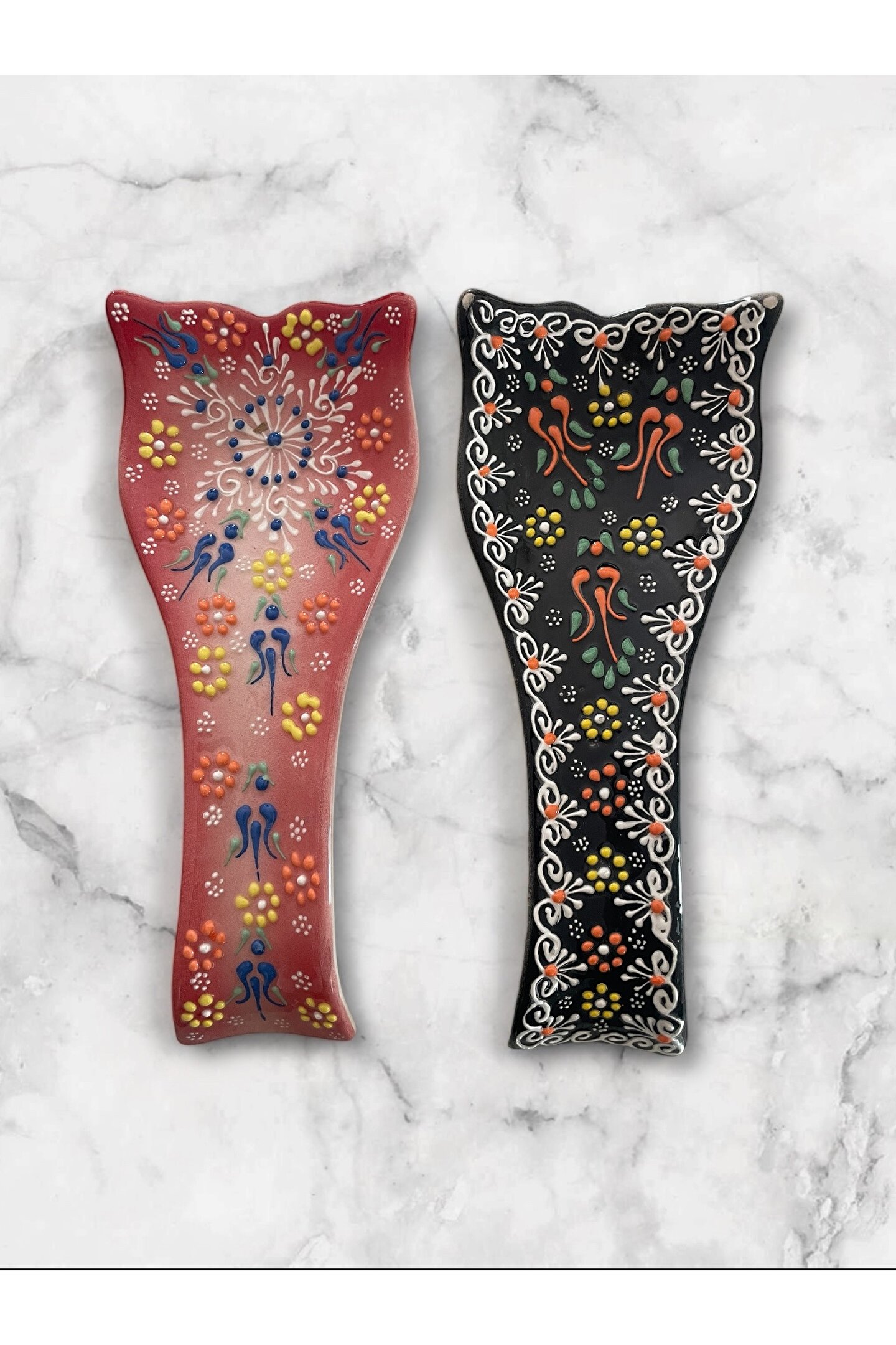 Çini işlemeli seramik kaşıklığımız tamamen el yapımı seramiktir. ; Dekoratif kaşıklığımız mutfak tezgahınızda pişirme düzeninize destek olup istenmeyen kaşık izlerinin, lekelerinin önüne geçecektir. ; Dekoratif Tasarım Kirli Kaşık Altlığı, Kaşıklık, Kepçe Altlığı ürünümüz Kırmızı ve Siyah renklerinde 28 cm uzunluğunda, 2,5 cm yüksekliğinde ve 12 cm enindedir. 2 adet gönderim yapılacaktır. ; Kurşun içermez, sıcak ve soğuk temasa uygundur, bulaşık makinasında kullanabilirsiniz. ; Keyifli alışverişler diliyoruz :) ;