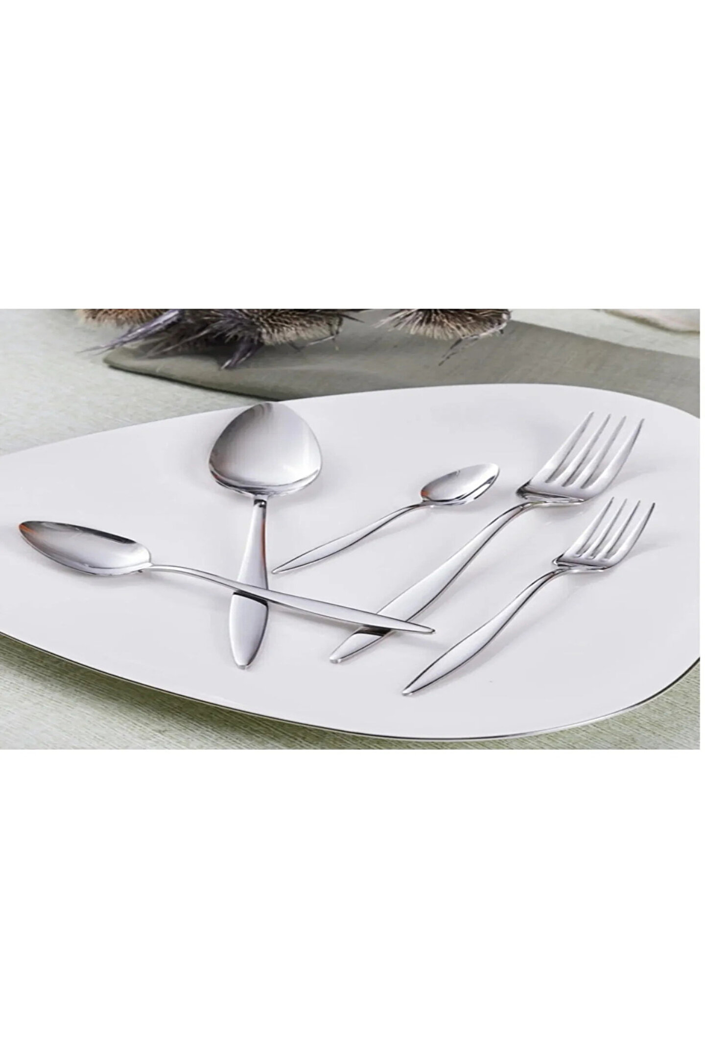 ARVEY 30 Parça 6 Kişilik Natural Çatal Kaşık Takımı - Sivri Model