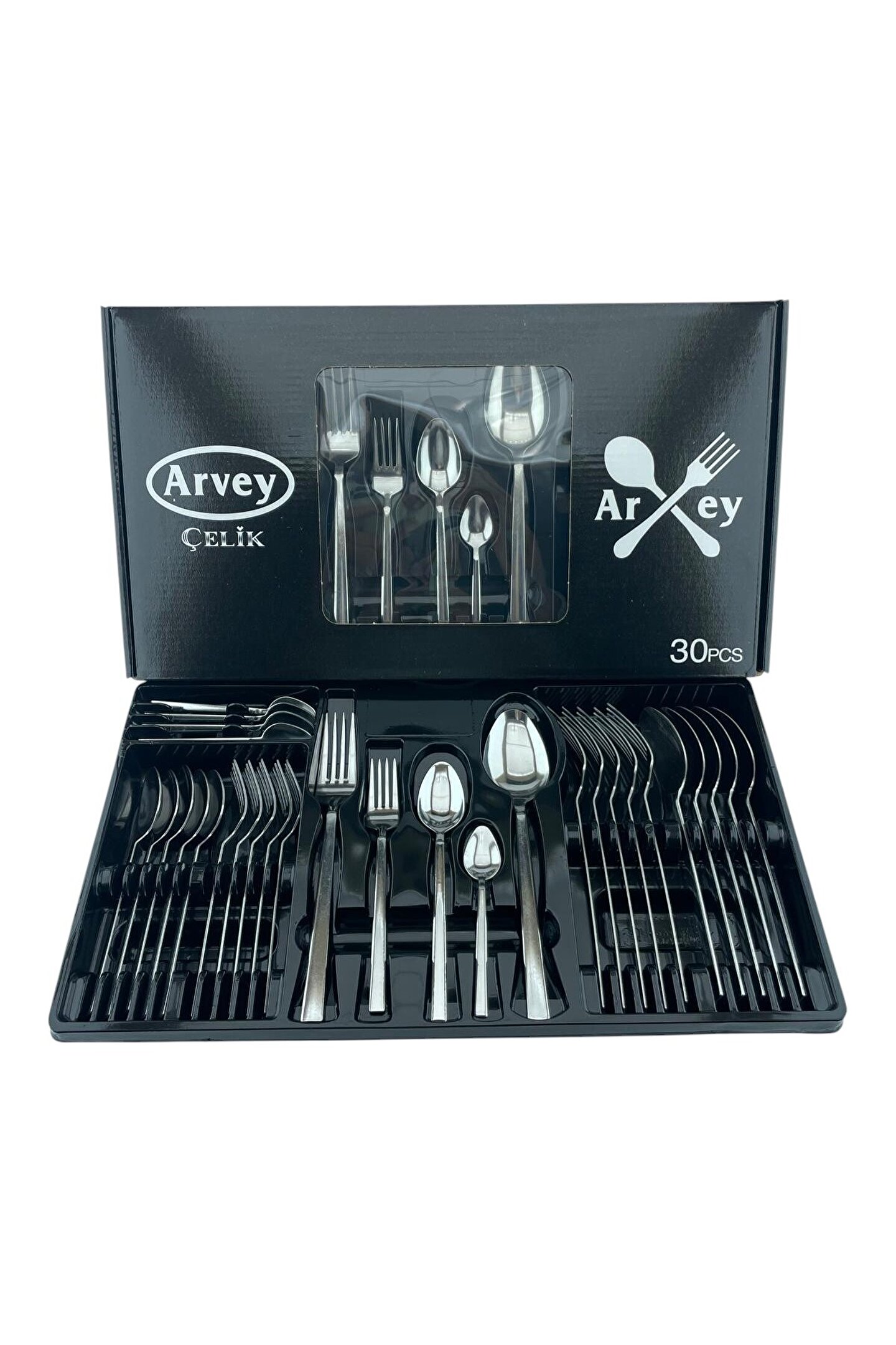 Arvey 30 Parça 6 Kişilik ; 6 Parça Yemek Çatalı ; 6 Parça Yemek Kaşığı ; 6 Parça Tatlı Çatalı ; 6 Parça Tatlı Kaşığı ; 6 Parça Çay Kaşığı ; Ürünleri kullanımdan önce sıcak suda sabun veya bulaşık deterjanı ile yıkadıktan sonra durulayıp bir bez ile iyice kurulayın ; Kesinlikle çamaşır suyu kullanmayınız, asitli ortamda bulundurmayınız ; Ürünleri kullanımdan sonra en kısa sürede yıkayınız ve kurulayınız ; Ürünler bulaşık makinasında yıkanabilir makindan çıktıktan sonra neminin bir kere bezle alınması lekelerin oluşmasını engeller ; Ürün fiyat performans ürünüdür, hem günlük kullanıma hem çeyizlik için hem de endüstriyel alanda kullanılabilir. ; Paslanmaz,kararmaz,bozulmaz. ;