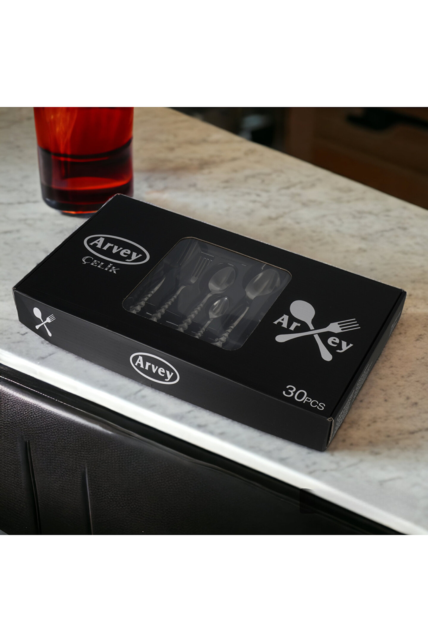 Arvey 30 Parça 6 Kişilik ; 6 Parça Yemek Çatalı ; 6 Parça Yemek Kaşığı ; 6 Parça Tatlı Çatalı ; 6 Parça Tatlı Kaşığı ; 6 Parça Çay Kaşığı ; Ürünleri kullanımdan önce sıcak suda sabun veya bulaşık deterjanı ile yıkadıktan sonra durulayıp bir bez ile iyice kurulayın ; Kesinlikle çamaşır suyu kullanmayınız, asitli ortamda bulundurmayınız ; Ürünleri kullanımdan sonra en kısa sürede yıkayınız ve kurulayınız ; Ürünler bulaşık makinasında yıkanabilir makindan çıktıktan sonra neminin bir kere bezle alınması lekelerin oluşmasını engeller ; Ürün fiyat performans ürünüdür, hem günlük kullanıma hem çeyizlik için hem de endüstriyel alanda kullanılabilir. ; Paslanmaz,kararmaz,bozulmaz. ;