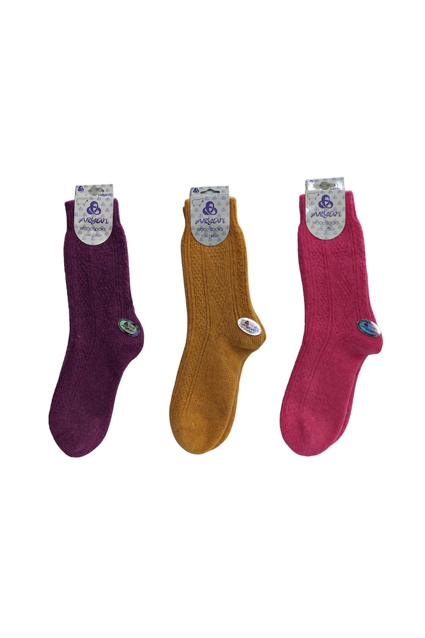 aryün 3LÜ SET DİKİŞSİZ RENKLİ YÜN SOKET KADIN ÇORAP