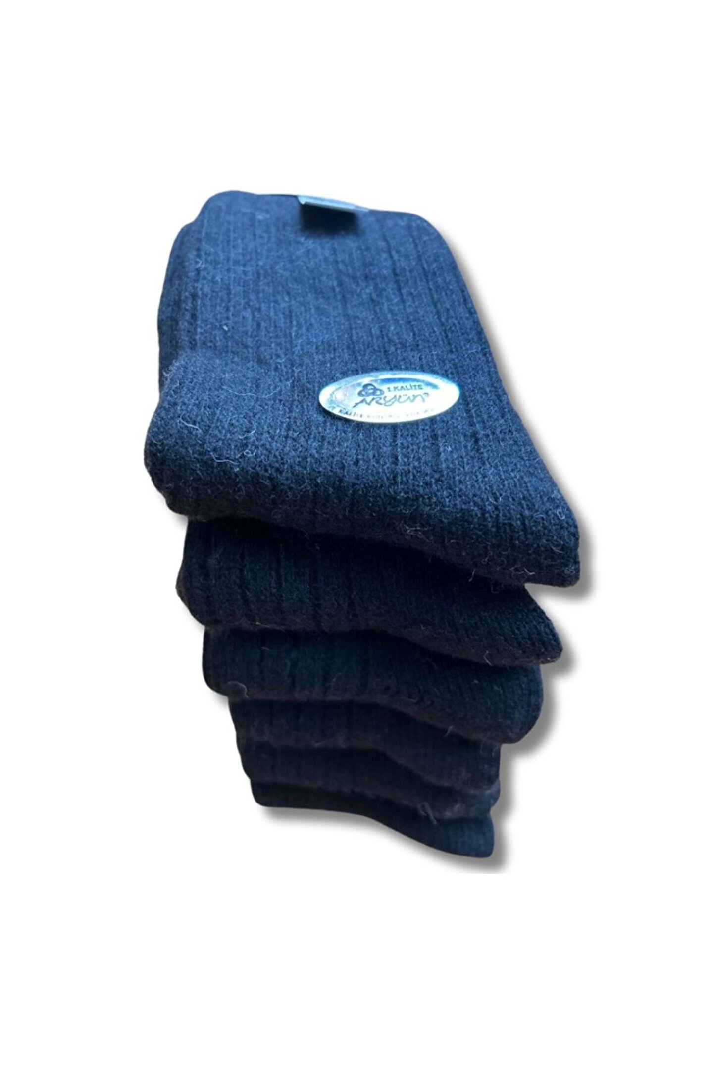 aryün Erkek Saf Yün Siyah 6 Çift Kendinden Çizgili Okul İş Casual Çorap 4145 Numaralara Uygun
