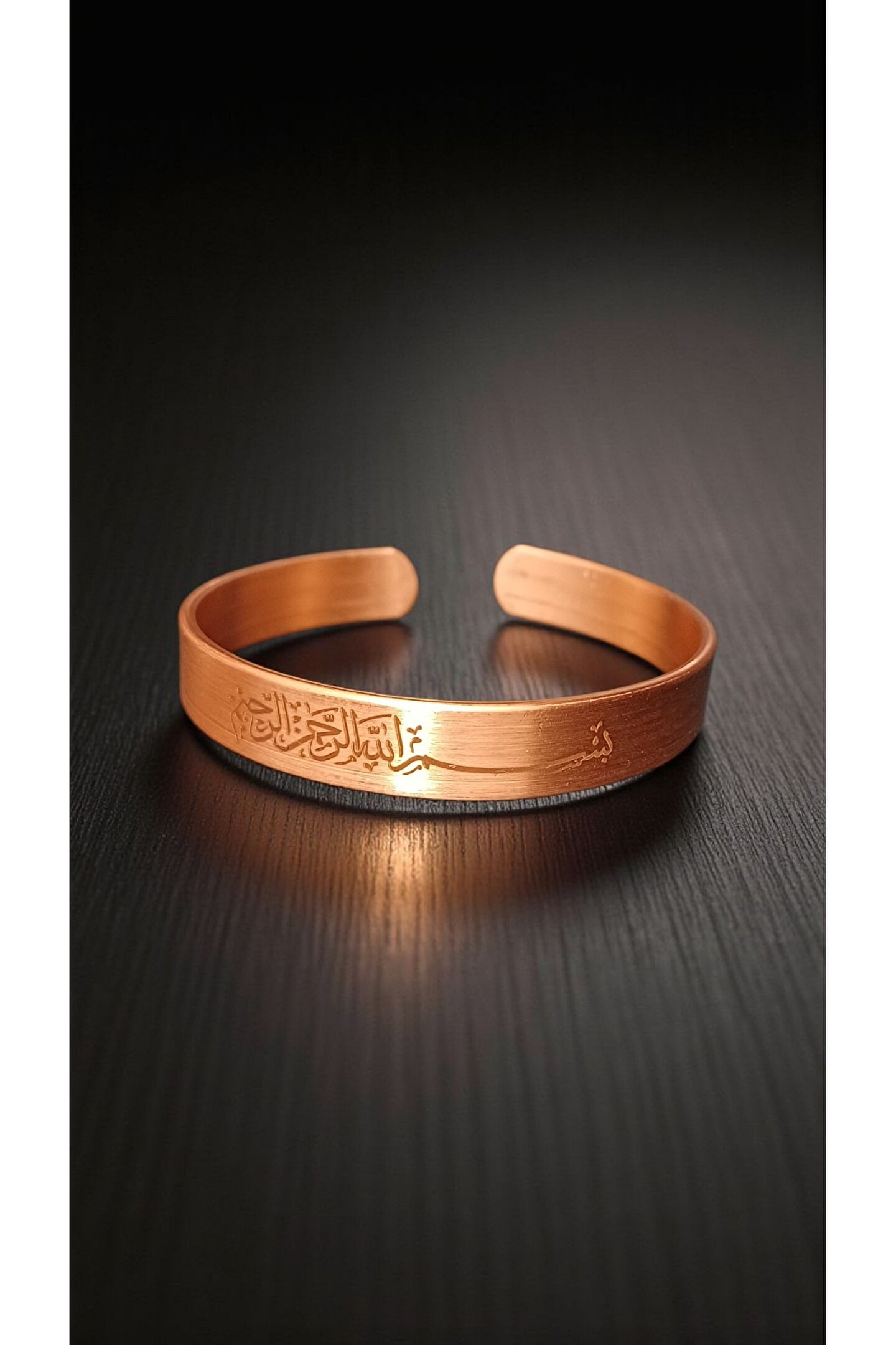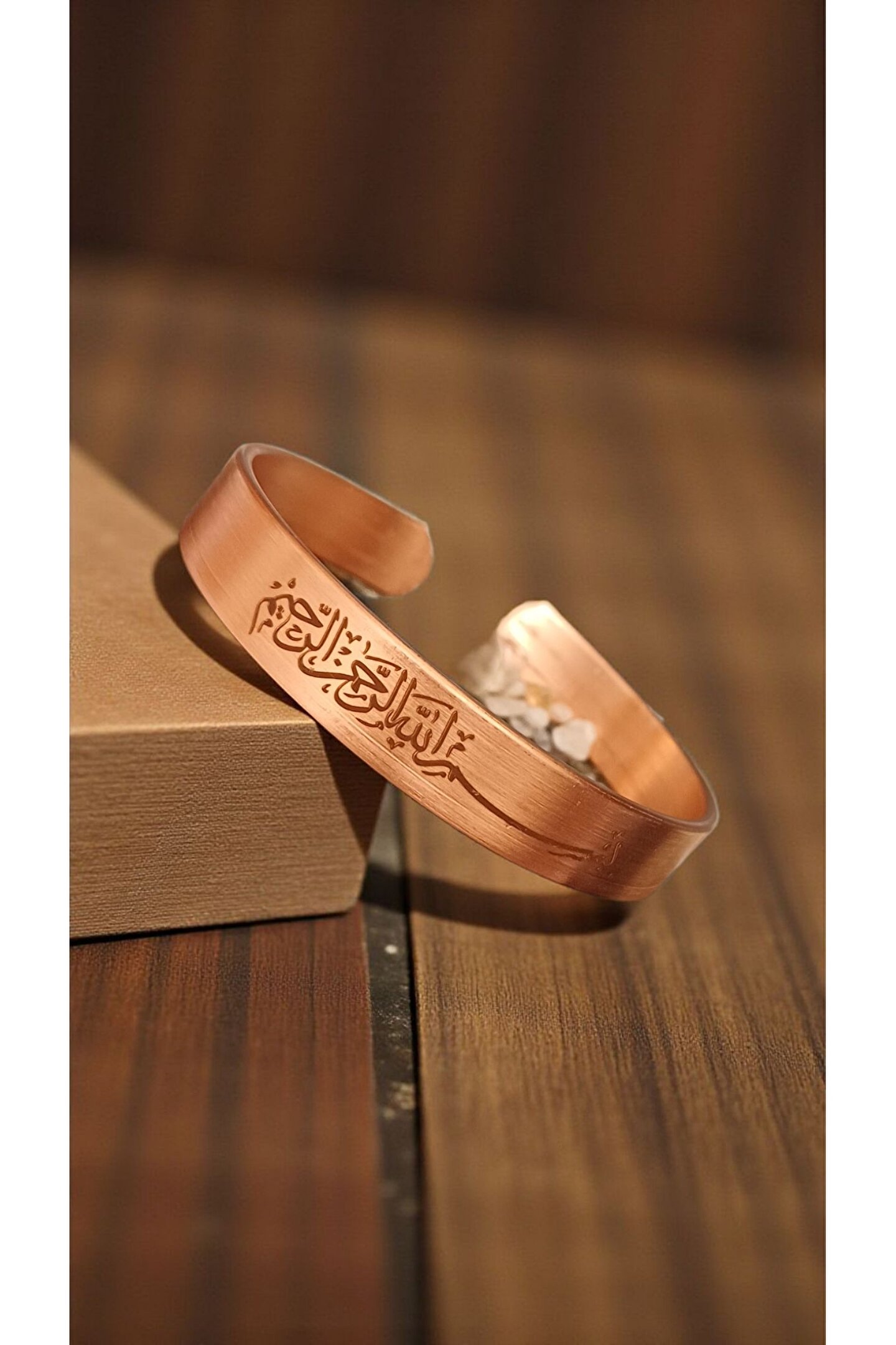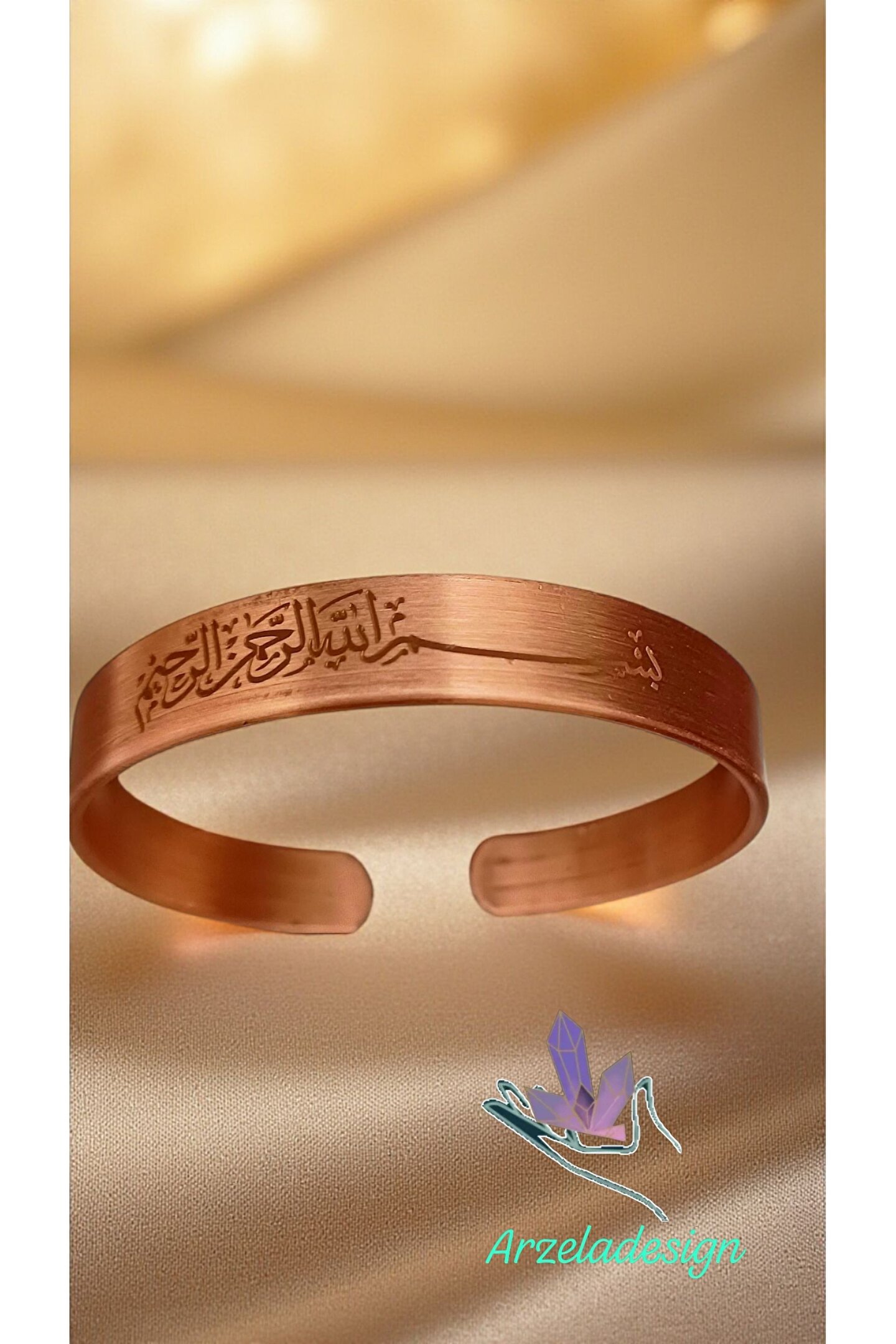 Besmele İşlemeli Bakır Bileklik ✨Özel işçilikle hazırlanmış bakır bileklik, üzerine zarif şekilde işlenmiş Besmele motifiyle hem estetik hem de manevi bir değer taşır.;