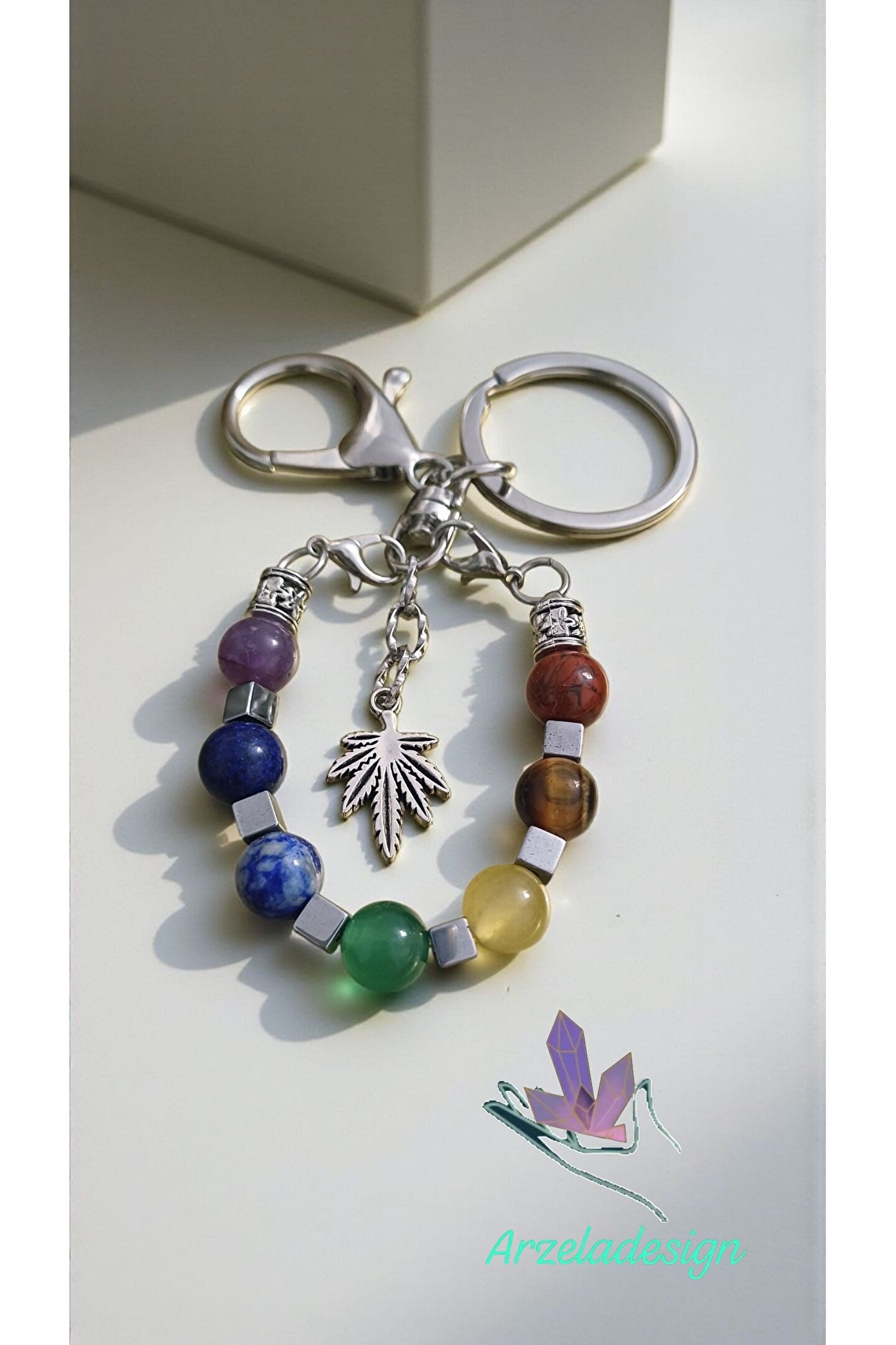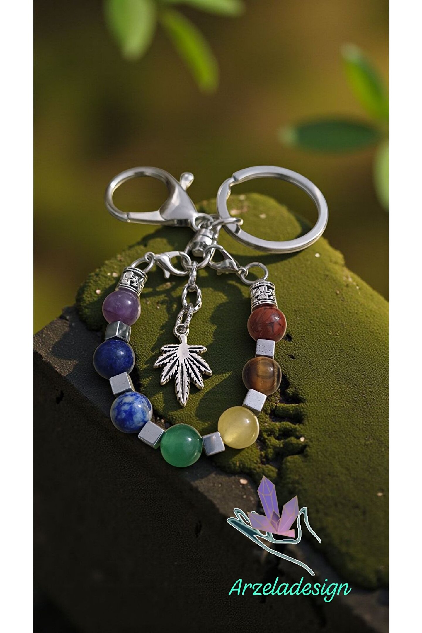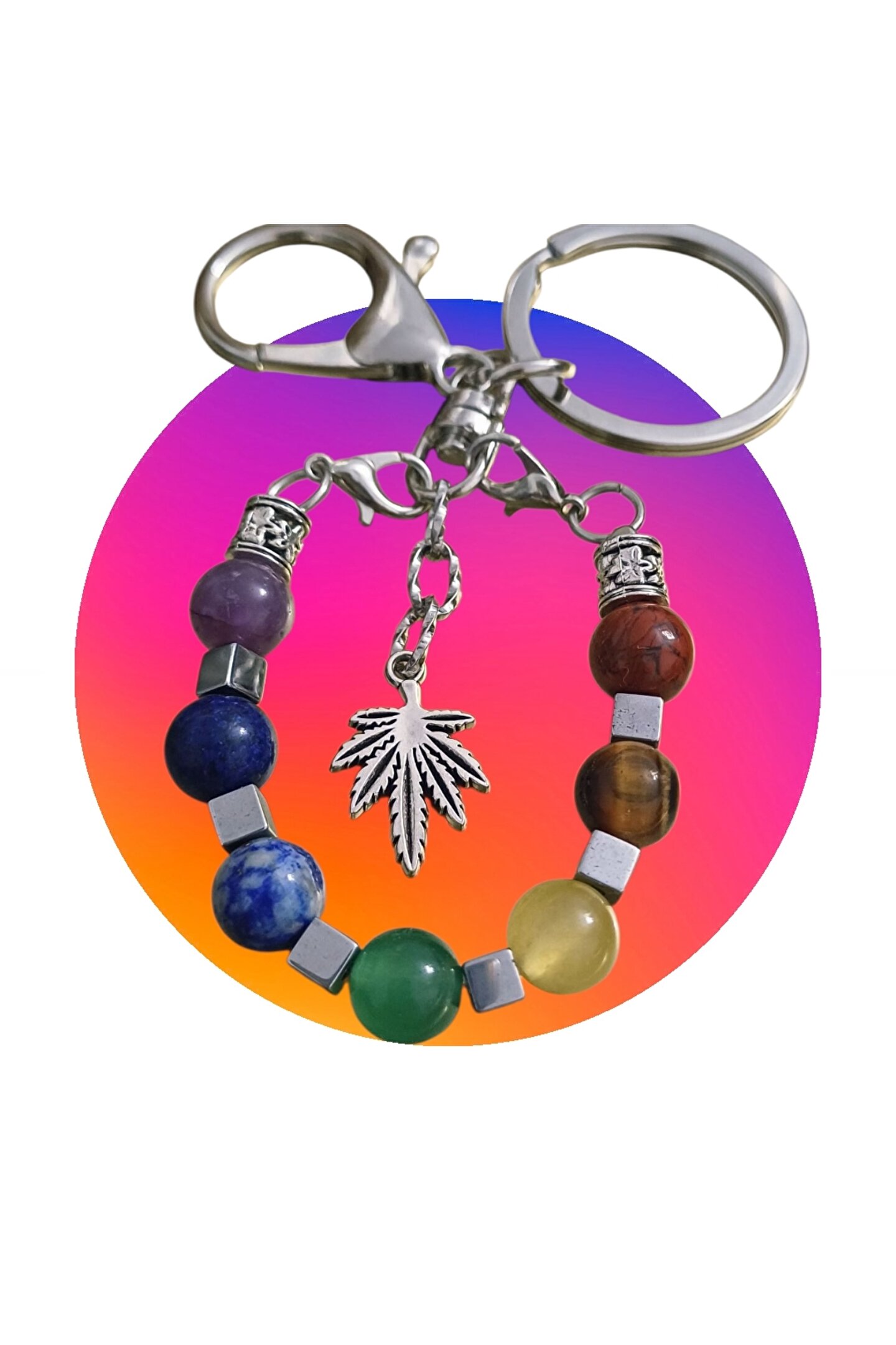 arzela Doğal Taş 7 Çakra Anahtarlik Çagra Dengesi 8mm Doğal Taş