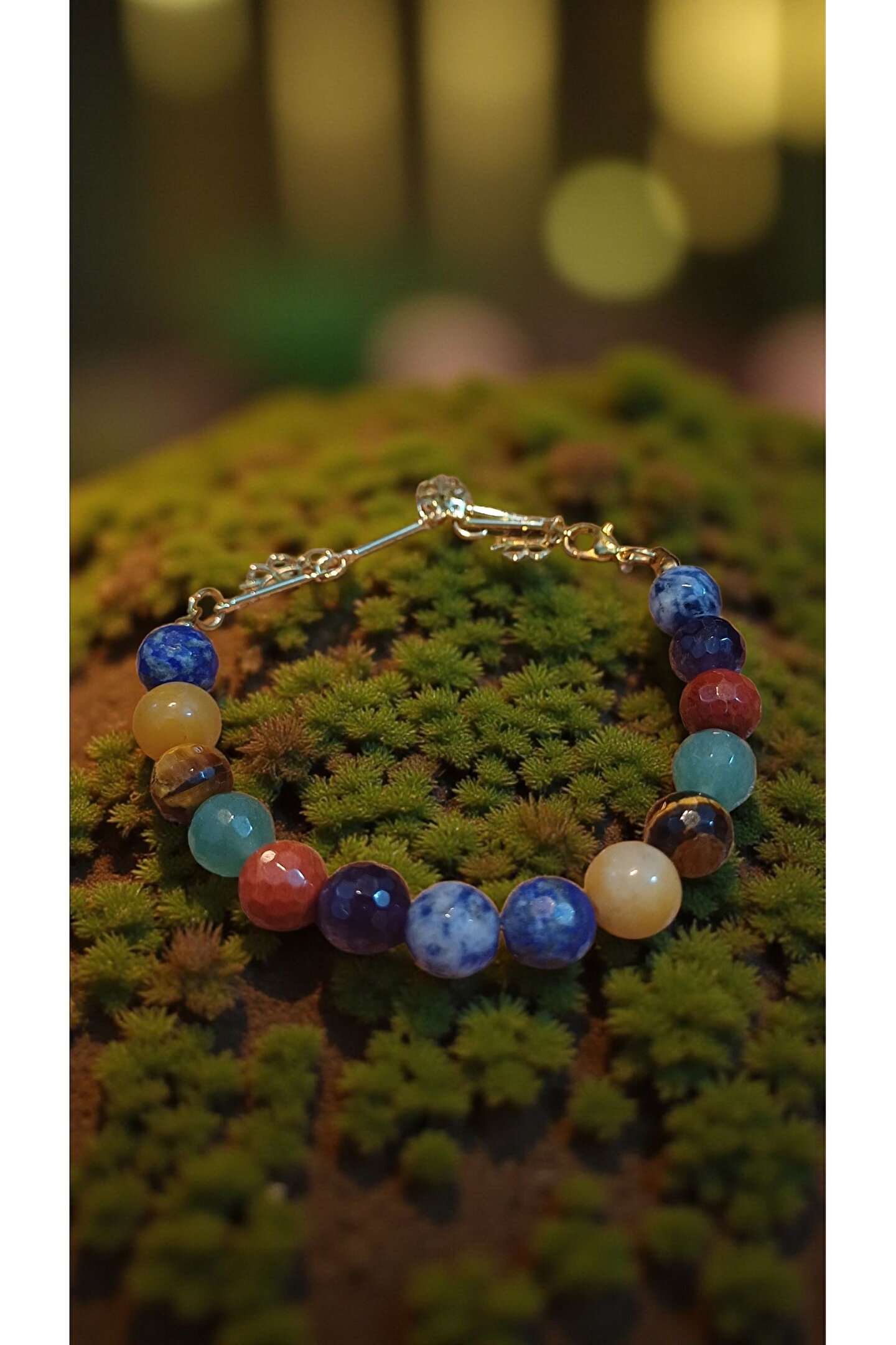Cem kalite doğal taslarla tasarlanmis bileklik6 cakrayi dengelerken auranizi dengeler ve koruma altina alir.; Aparatlar altin kaplamadir.