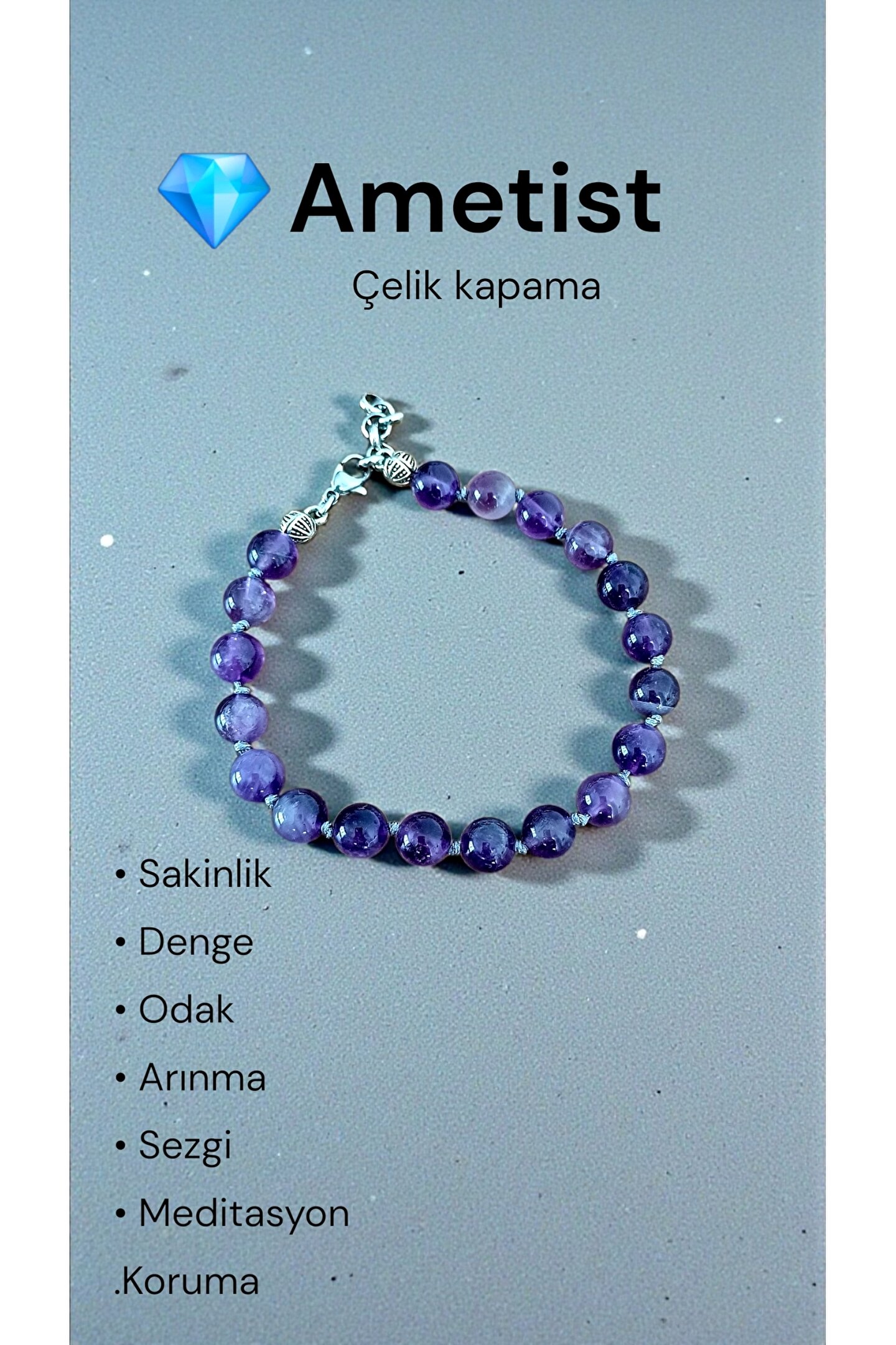 arzela Dogal Taş AMETİST Bileklik Cem Kalite 6mm standart ölçü