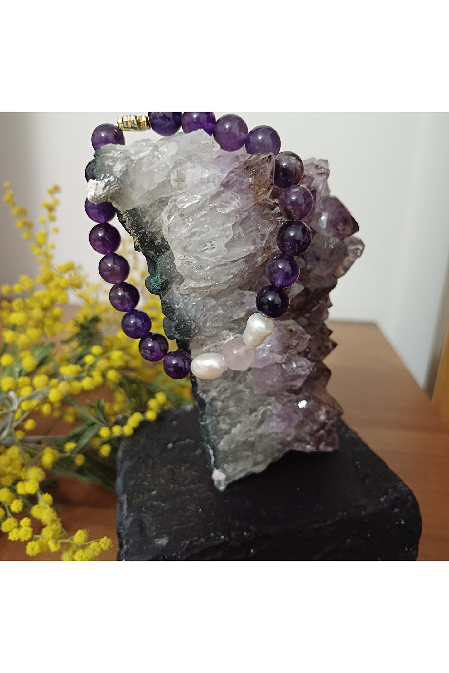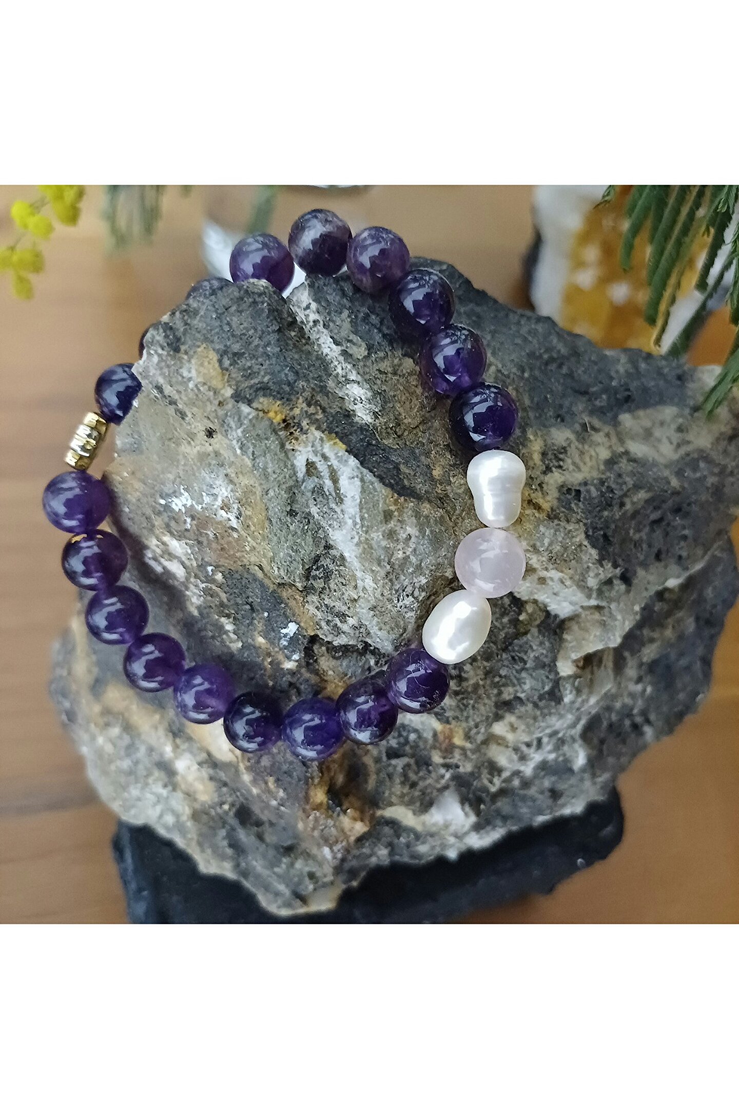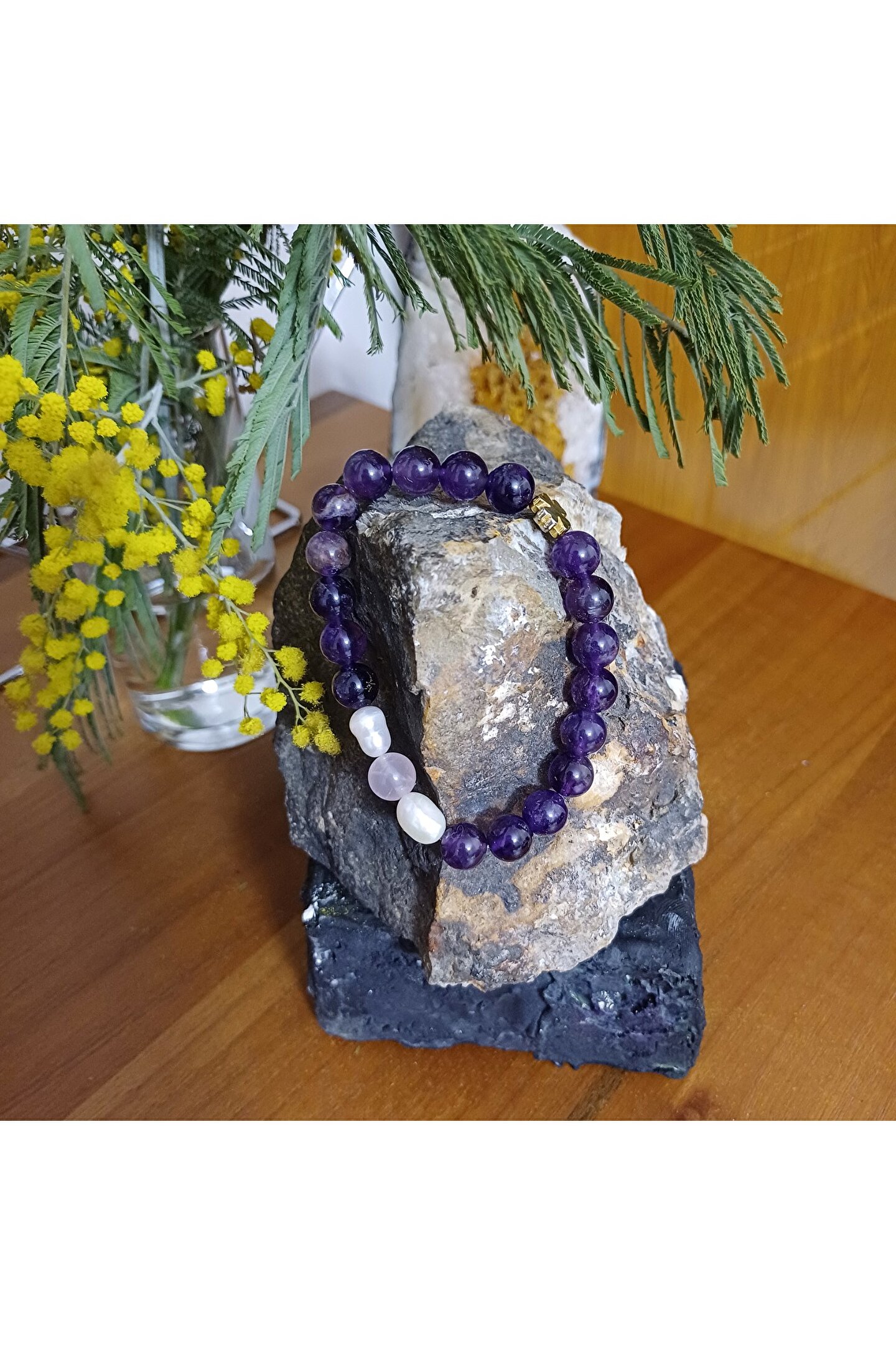 arzela Doğal Taş Ametist Bileklik Pozitif Enerji ve Koruma Bilekligi 8mm