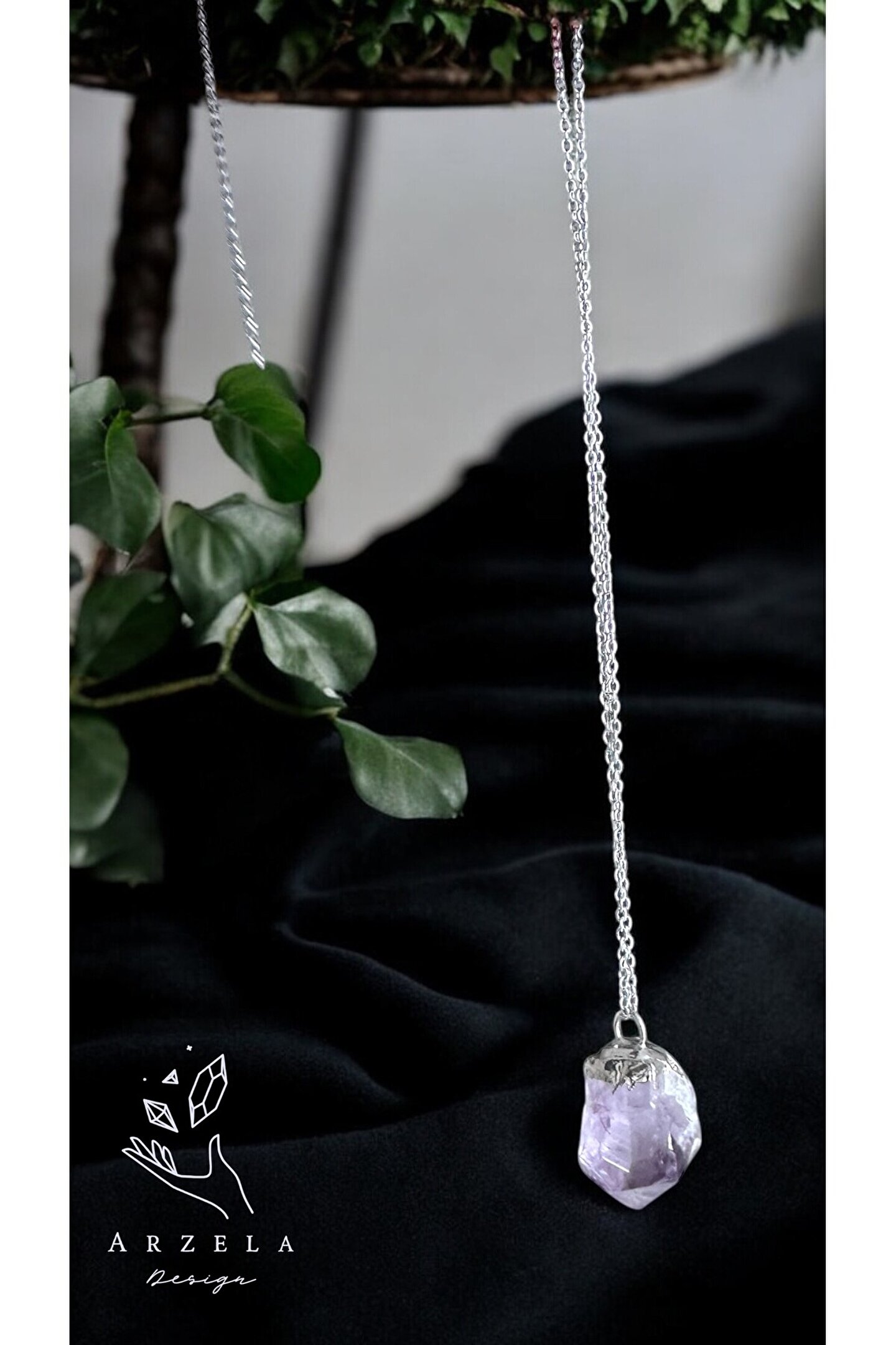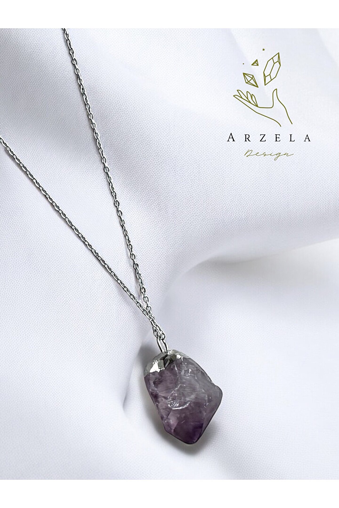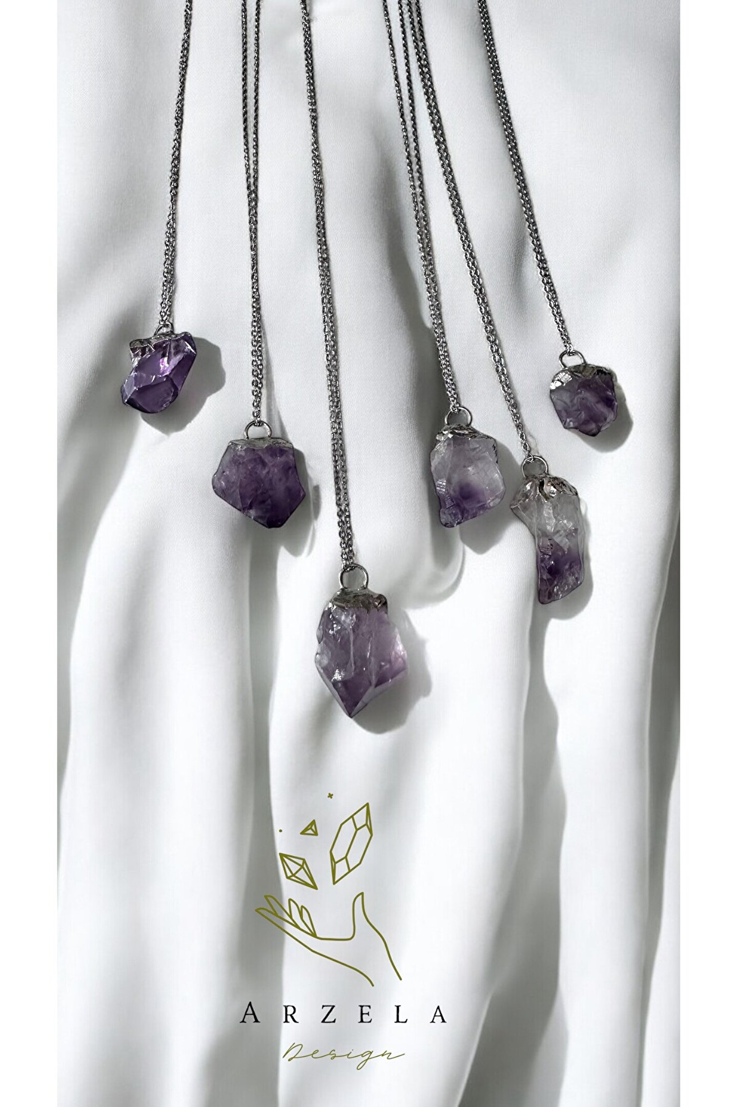 AMETİST, kristal yapısı nedeniyle özellikle enerjiyi düzenleme,meditasyon ve kişisel gelisim icin kullanılır ; AMETİST taşının stresi azaltmaya, dikkat ve konsantrasyonu artırmaya ve duygusal dengeyi sağlamaya yardımcı olur ; Bu taş, özellikle üçüncü göz çakrası ile güçlü bir bağlantıya sahiptir.; ; Ruhsal uyanış ve bilinç genişlemesine katkıda bulunabilir.; ; Ayrıca AMETİST, havayı temizleyen ve çevredeki negatif enerjiyi dönüştüren bir taş olarak da biliniyor ; Kisiyi topraklar ; Zincir gümüş renktedir Su ve kimyasal ile temas ettirmeyiniz